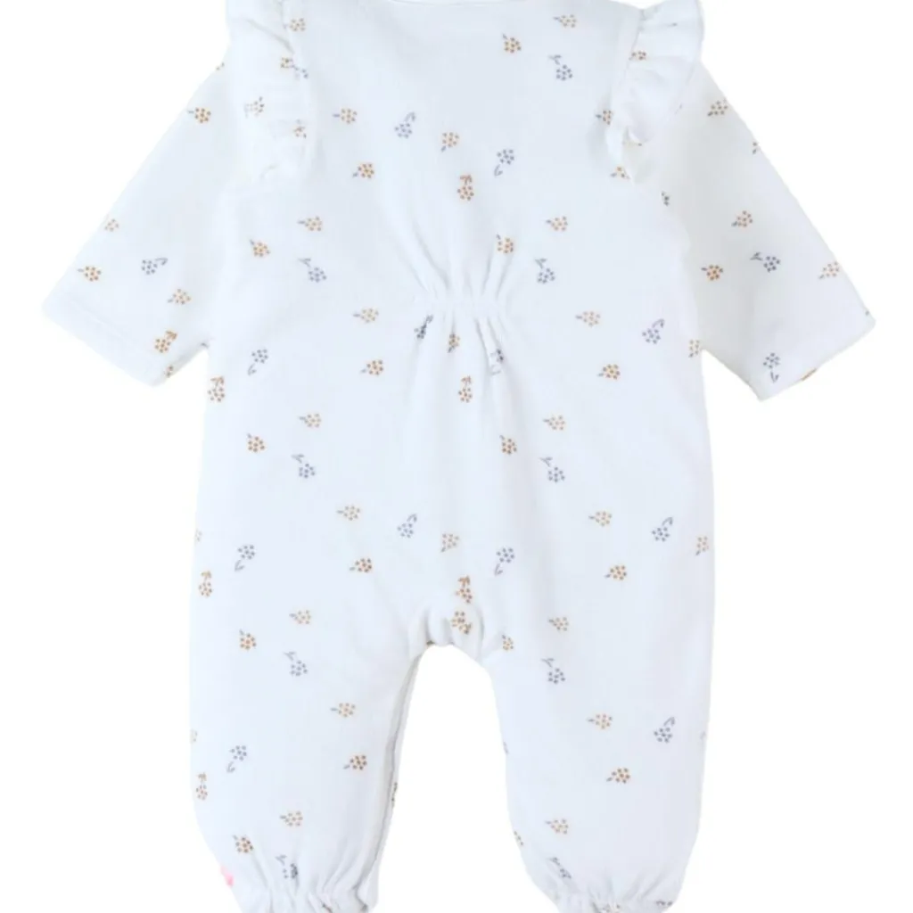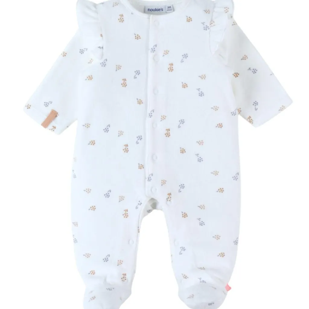 – Le pyjama est soigneusement confectionné avec un velours côtelé, un imprimé fleuri raffiné, un élégant passepoil écru et une pression personnalisée arborant le sourire de Nouky.