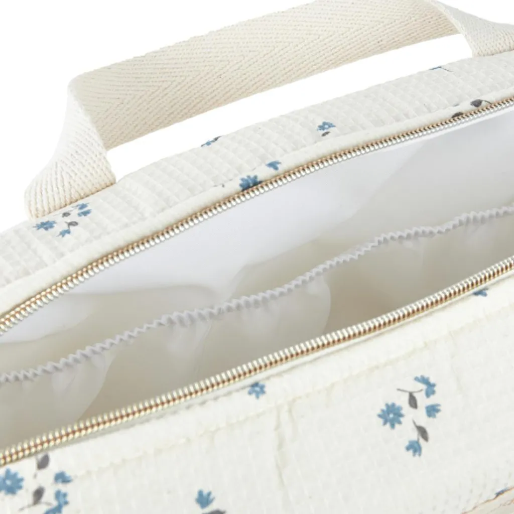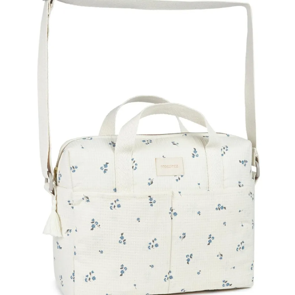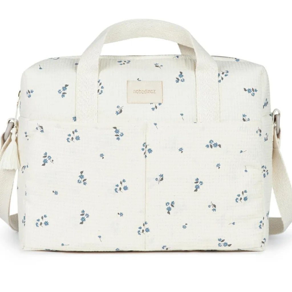 Découvrez le sac à langer imperméable Gala Lily Blue de Nobodinoz : l’alliance parfaite entre élégance, praticité et durabilité.