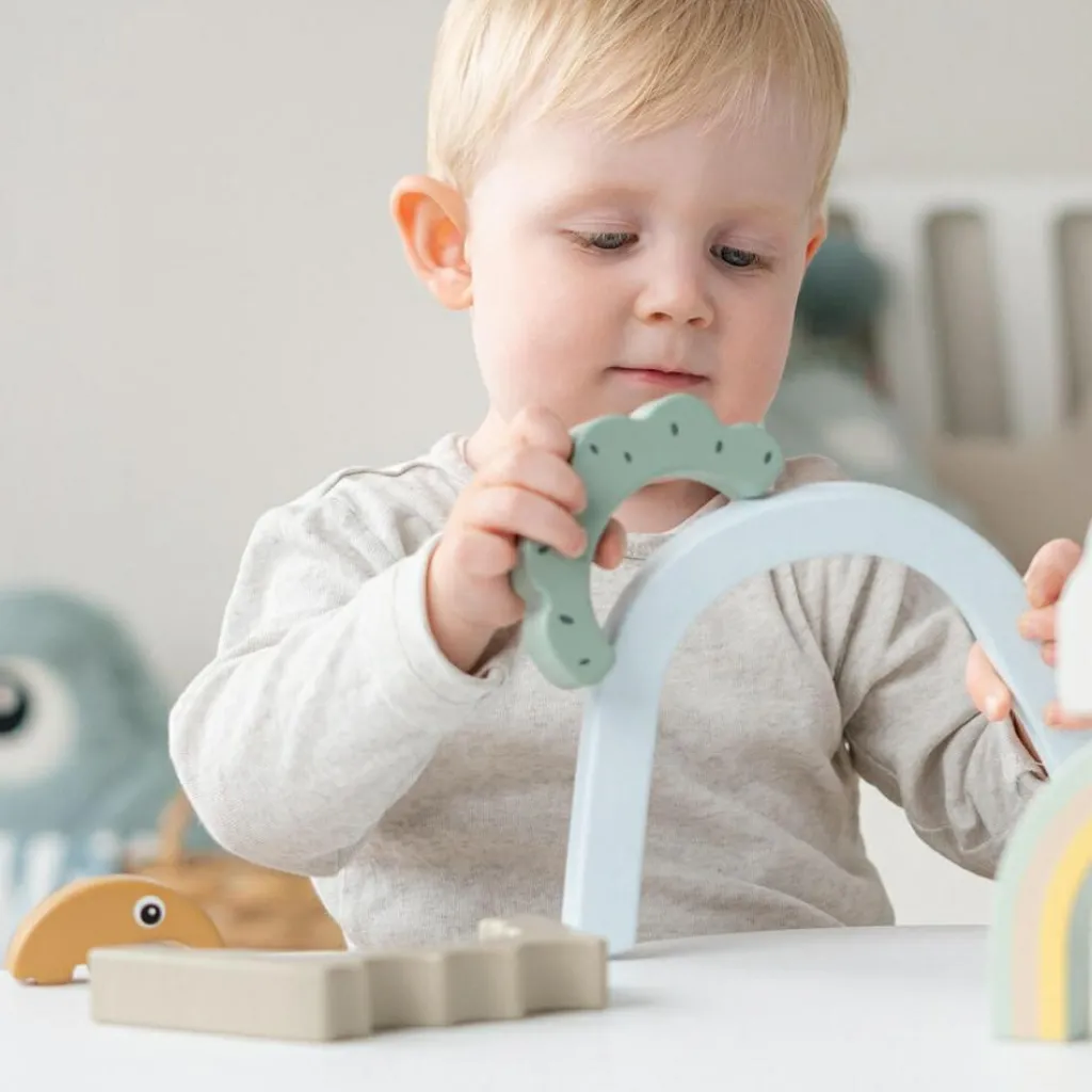 – Fabriqué en bois d’origine responsable et coloré avec de la peinture à l’eau sans substances nocives pour que l’enfant puisse jouer en toute sécurité.