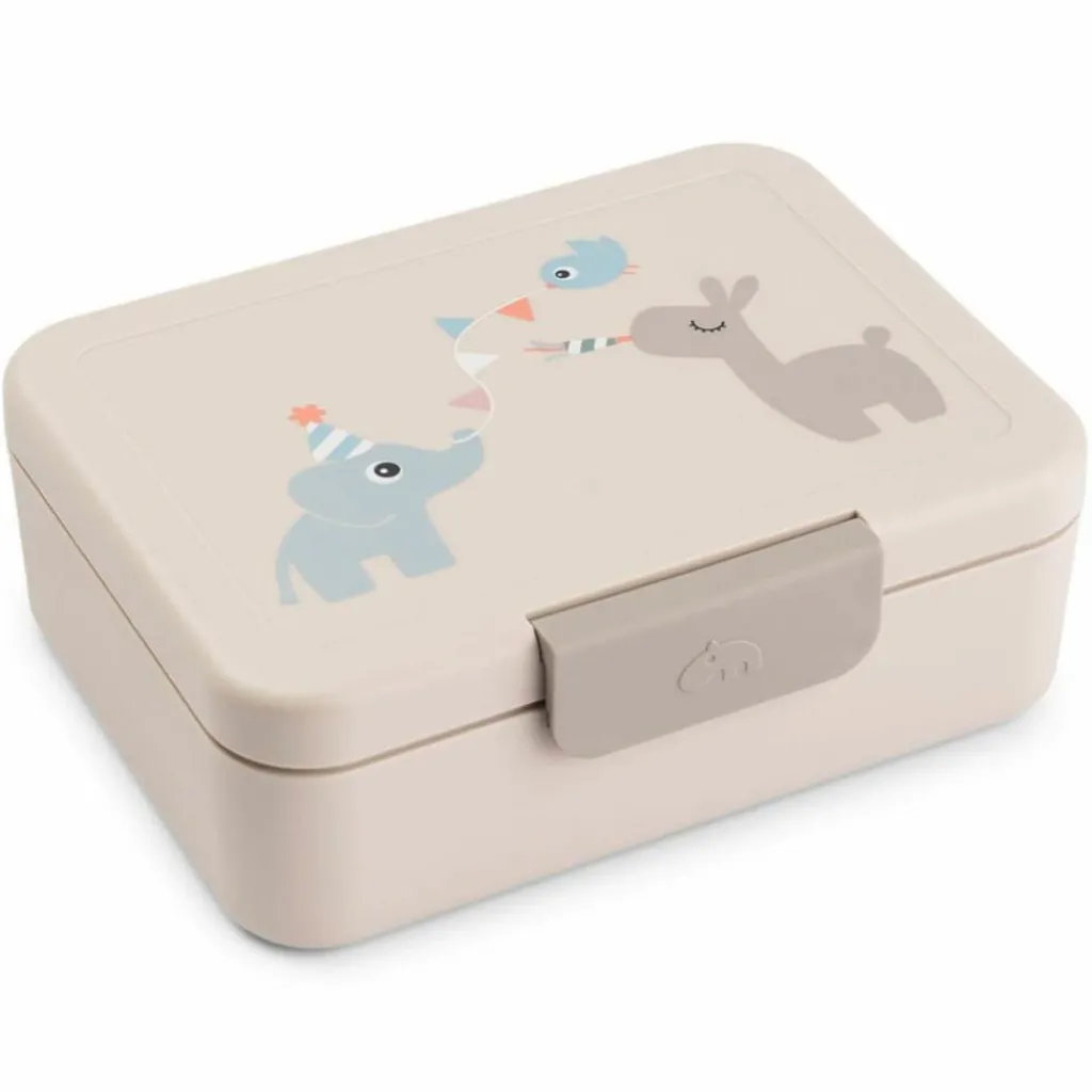 – Un design ludique : Un éléphant, un oiseau et un lama décorent le couvercle dans une ambiance de fête, pour le plus grand plaisir des enfants.
