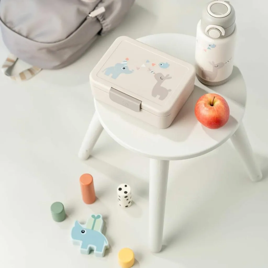 Avec ses motifs adorables d’animaux festifs et ses tons doux, cette boîte à goûter accompagne les aventures des tout-petits, à la maison comme à l’école. Élégante et pratique, elle a été pensée pour rendre les repas plus amusants tout en facilitant la vie des parents.
