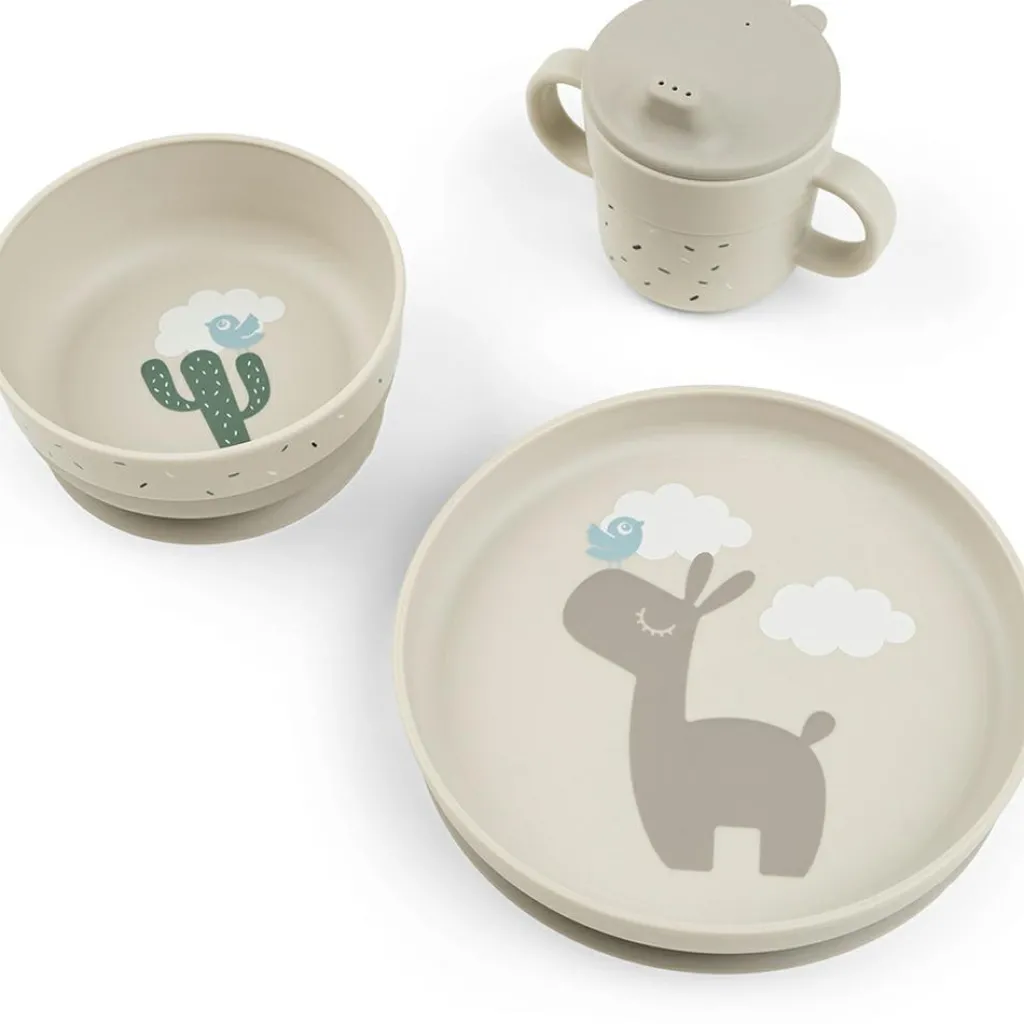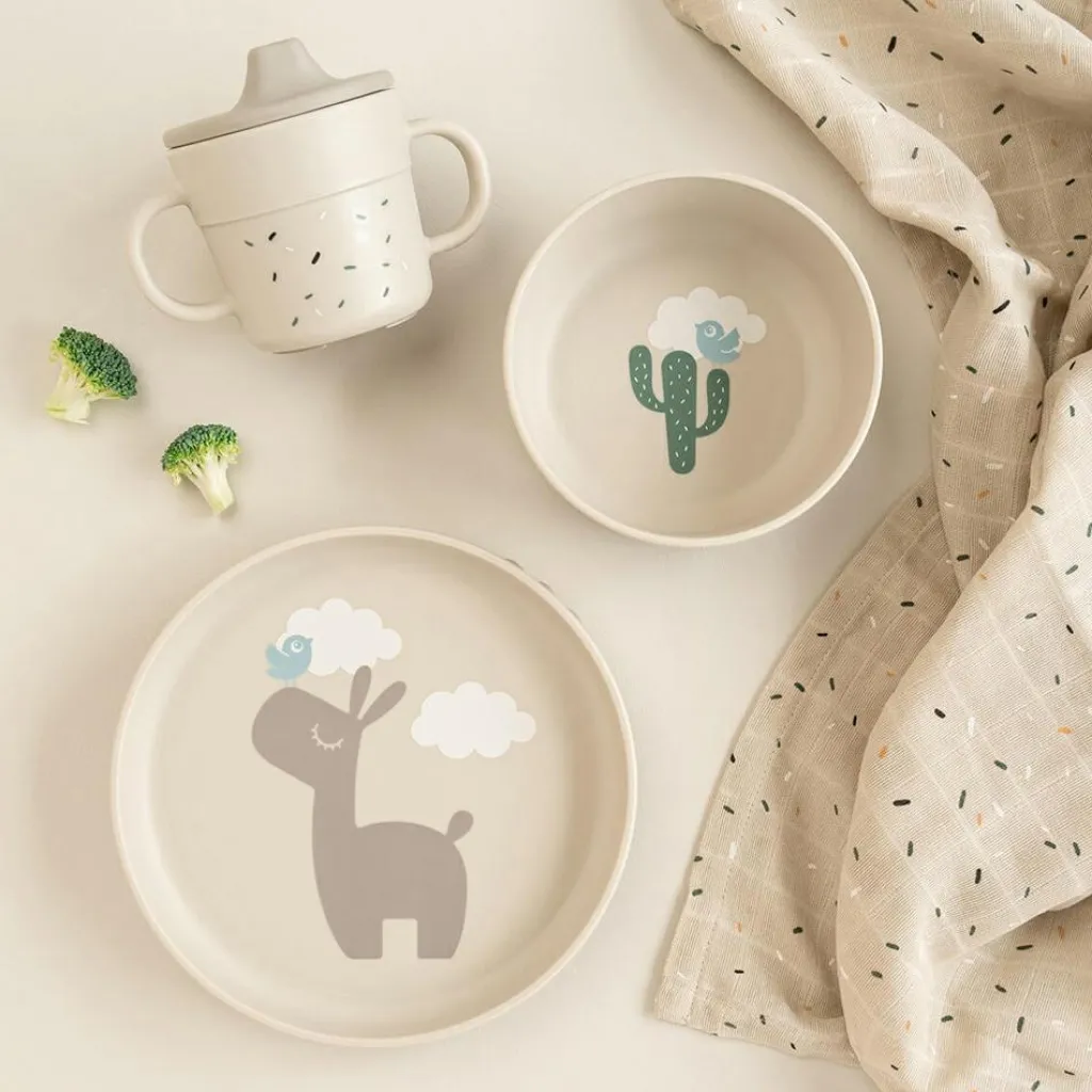 – Comprend 1 assiette, 1 bol et 1 tasse.