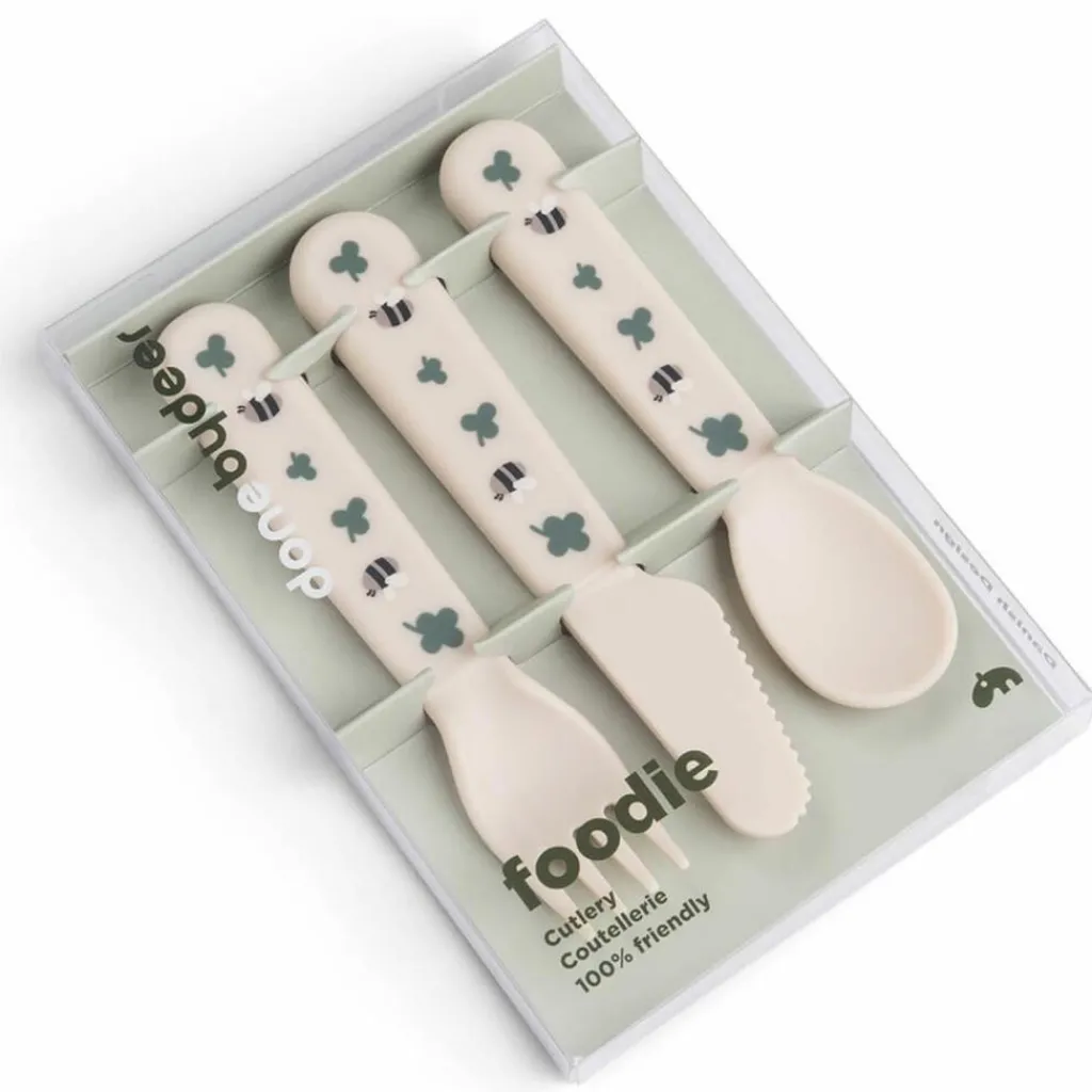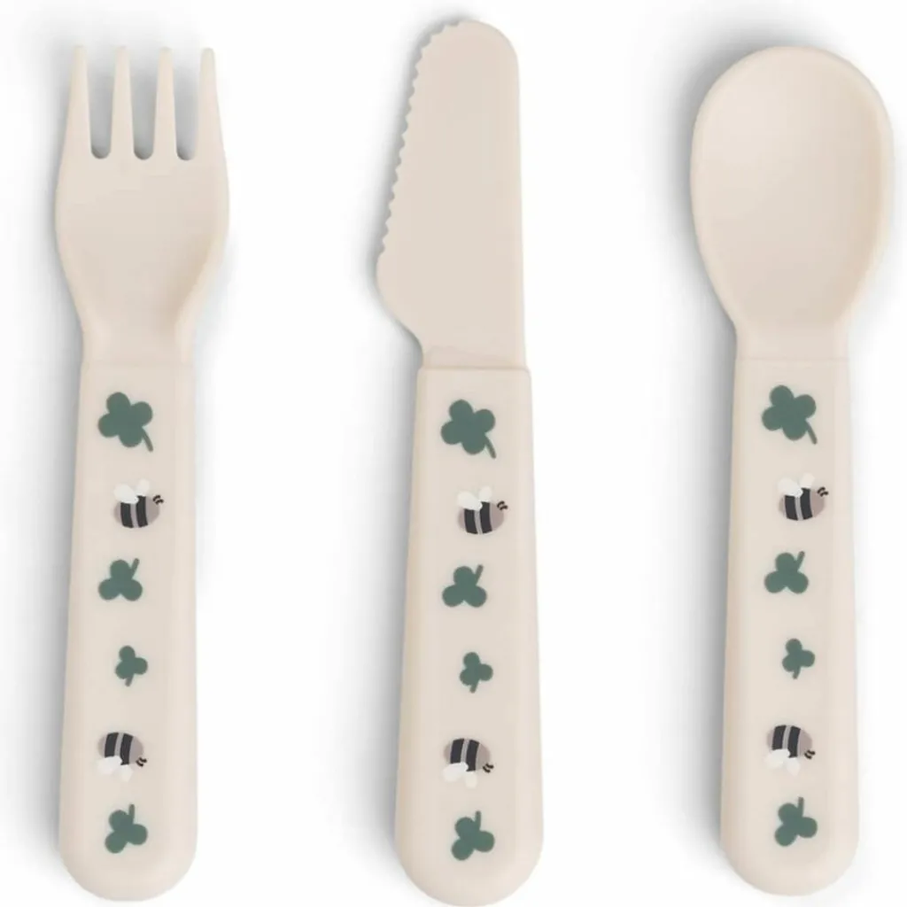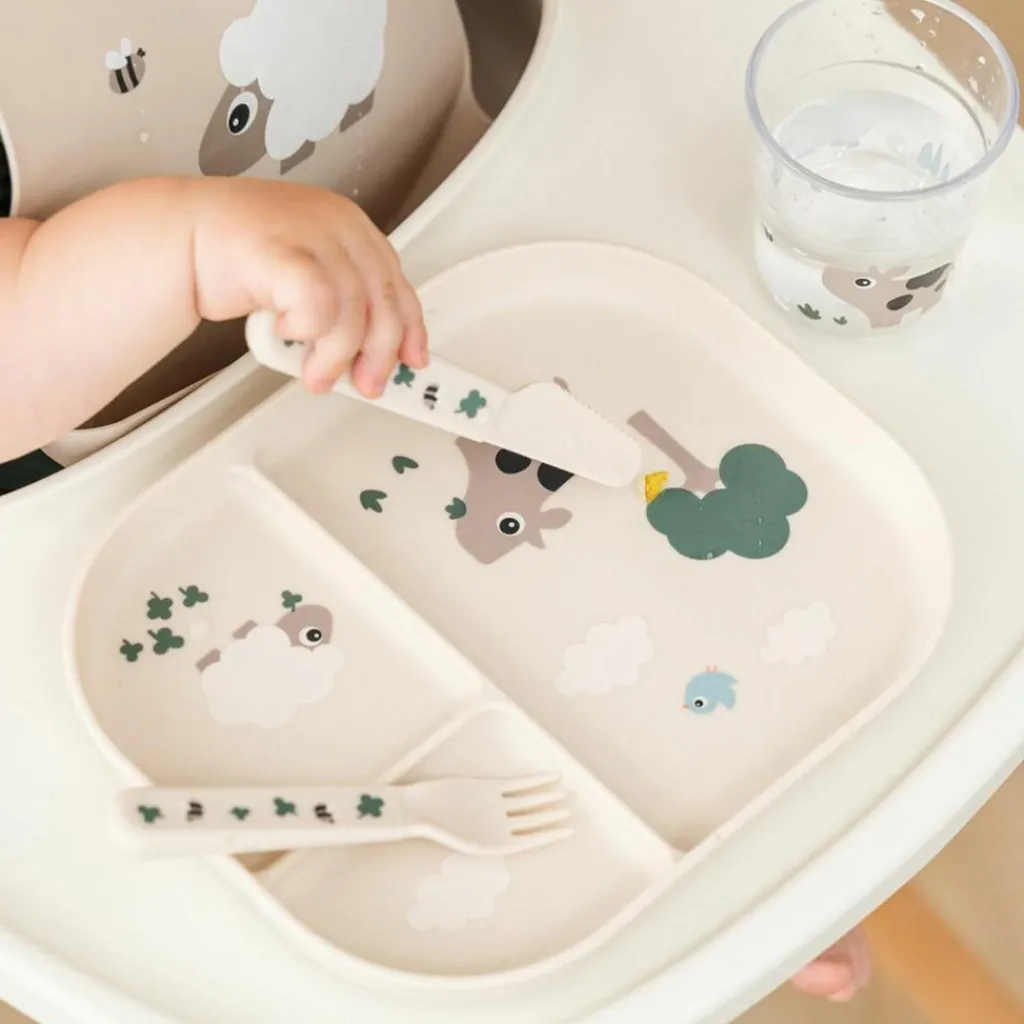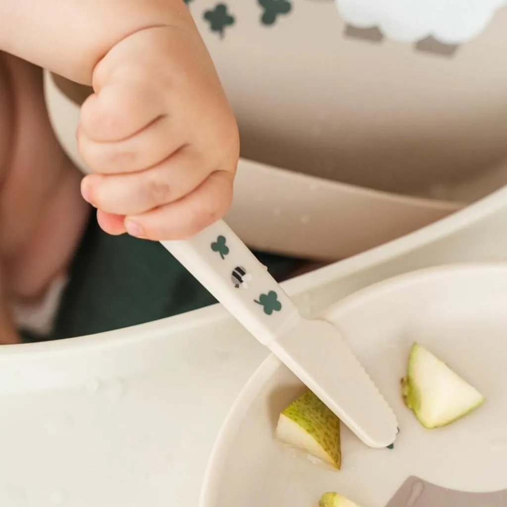 – Set de couverts avec des bords arrondis pour que l’enfant puisse manger en toute sécurité.