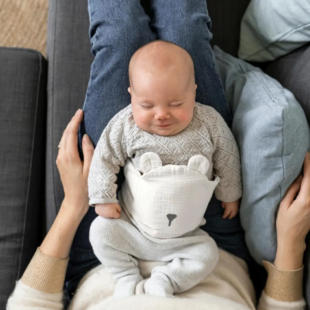 – Ceinture en gaze de coton 100% organique et remplissage 100% naturel : graines de colza et de lavande.