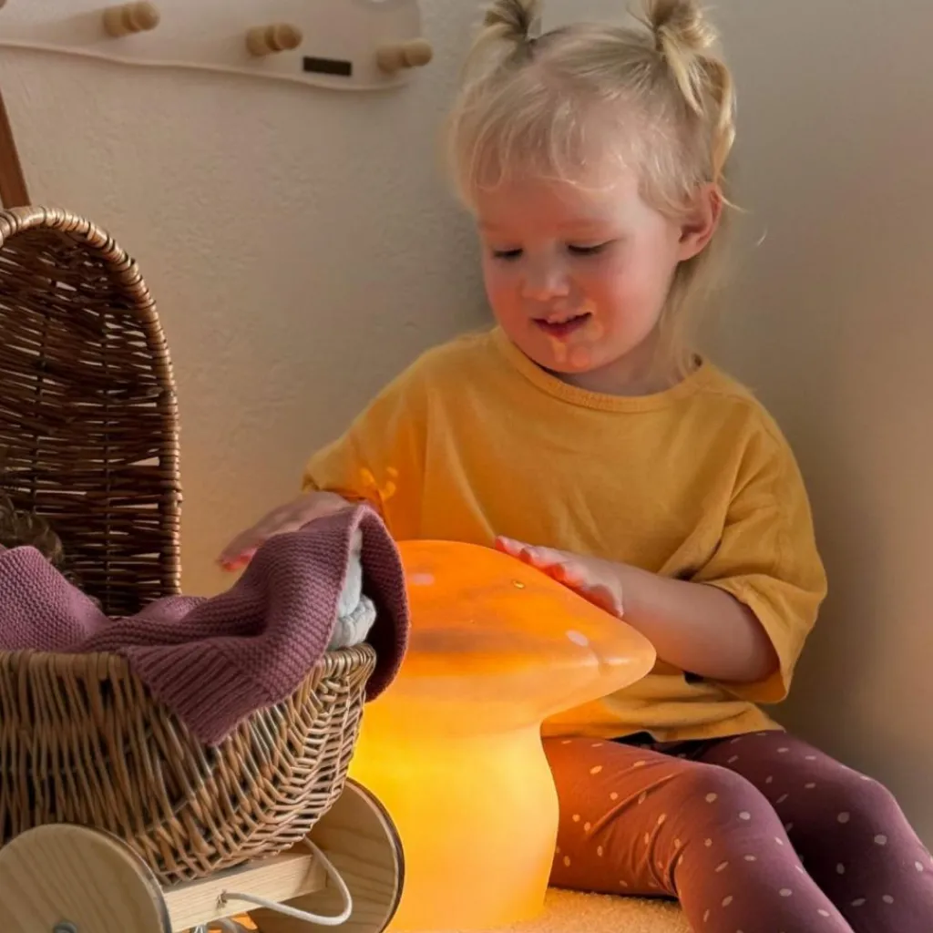 Cette grande lampe veilleuse champignon doré par Egmont Toys offre une ambiance digne de grands contes pour enfant, tout à fait adaptée à la chambre d’un bébé ou d’un enfant.