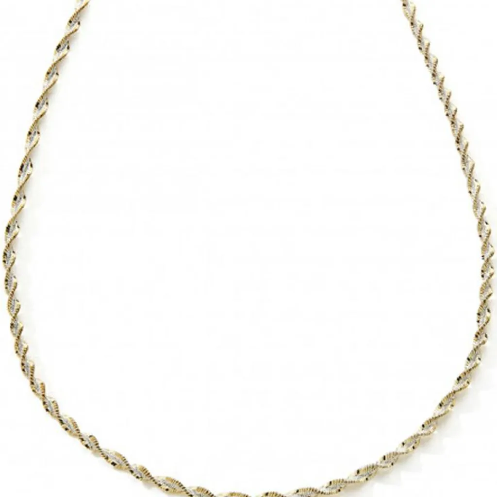 – Chaîne torsadée en argent avec contours dorés.