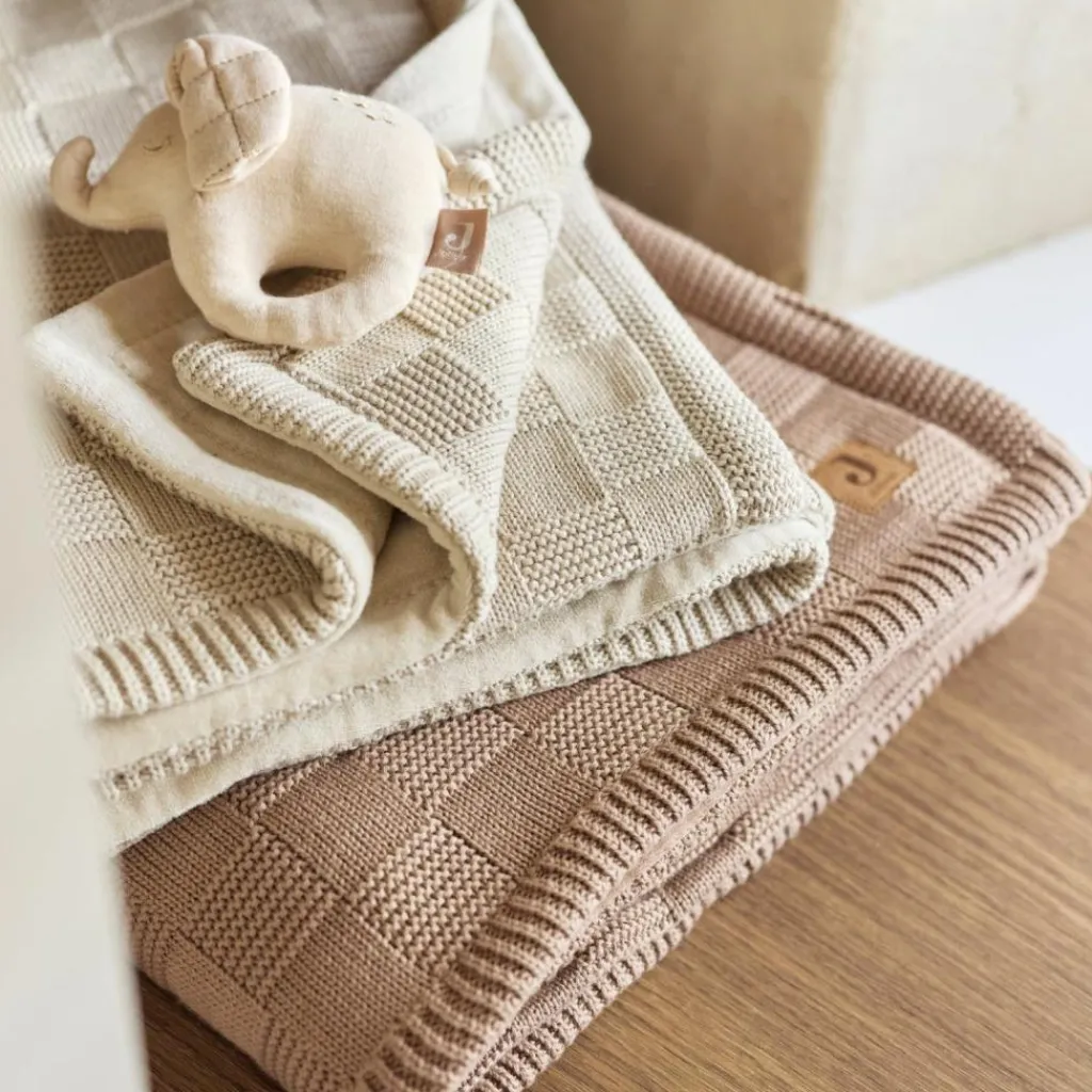 Avec son grand format et son tricot à motif carreaux, cette couverture crée une ambiance douce et rassurante. Elle est confectionnée en coton biologique certifié GOTS, ce qui en fait un choix à la fois durable, sain et respectueux de la peau fragile des tout-petits. Ultra douce, elle est idéale pour les nuits paisibles, les siestes ou les moments câlins.