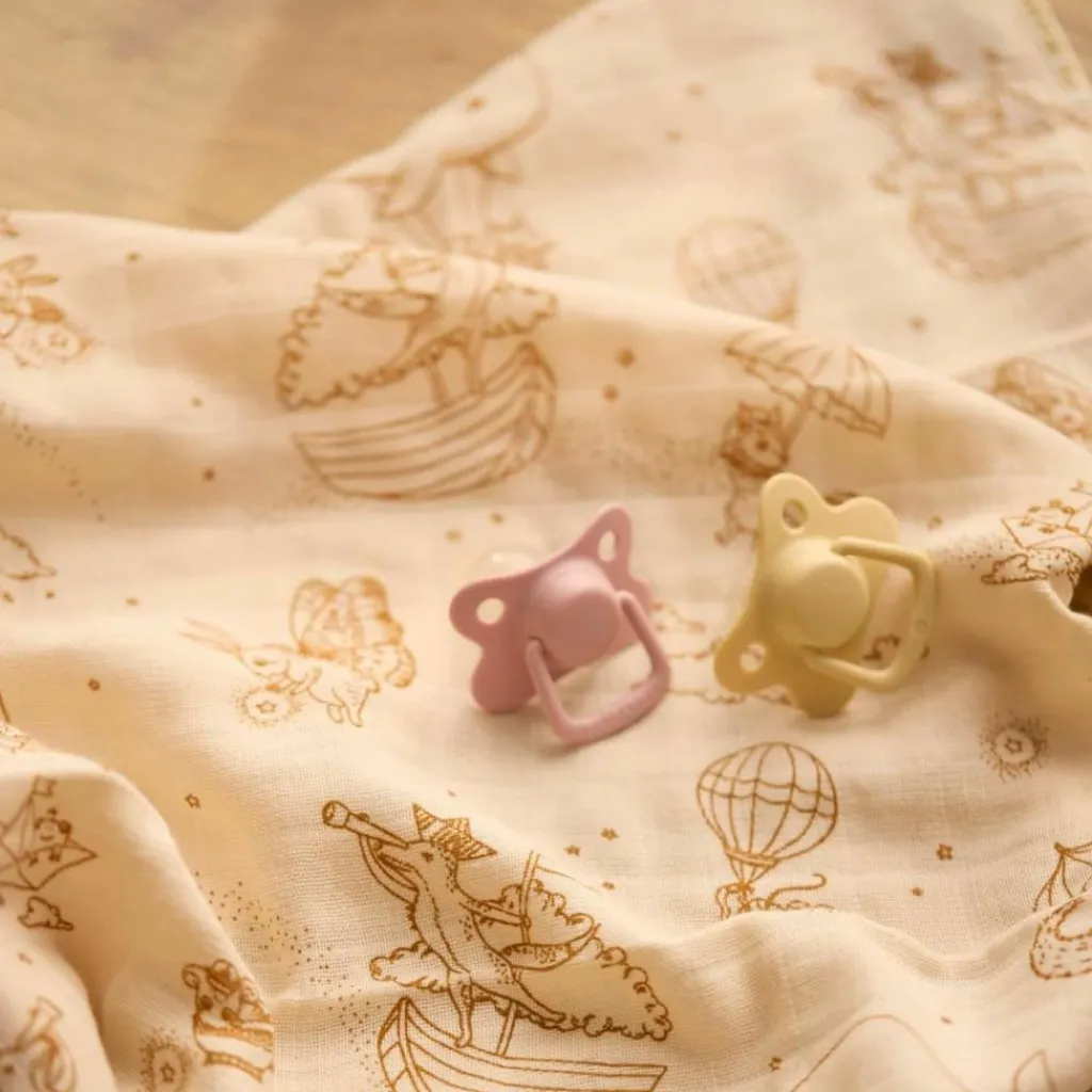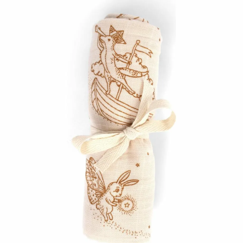 Un indispensable du quotidien avec bébé : le lange Dreamy Adventurers en mousseline bio GOTS de Filibabba.