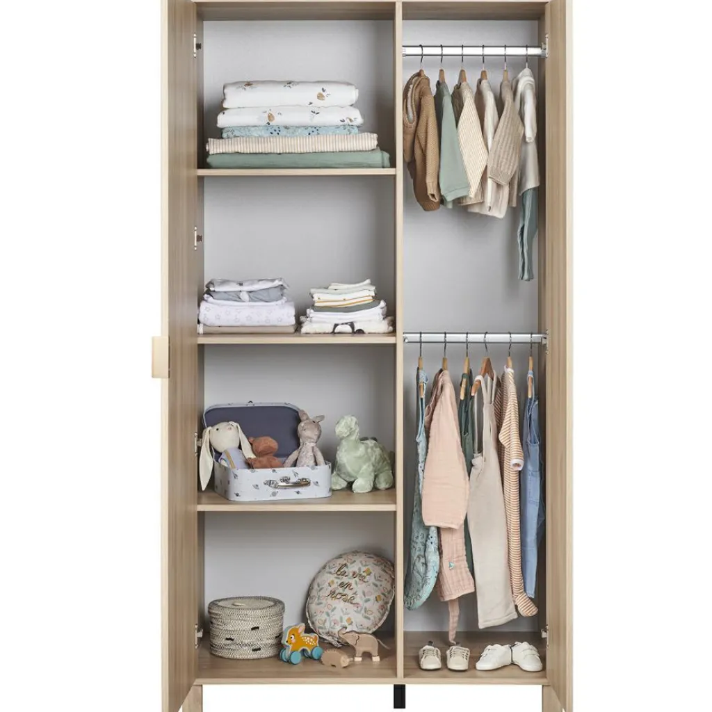 – Faites le choix de l’armoire Calypso dans un style naturel chic, pour la chambre de votre futur bébé.