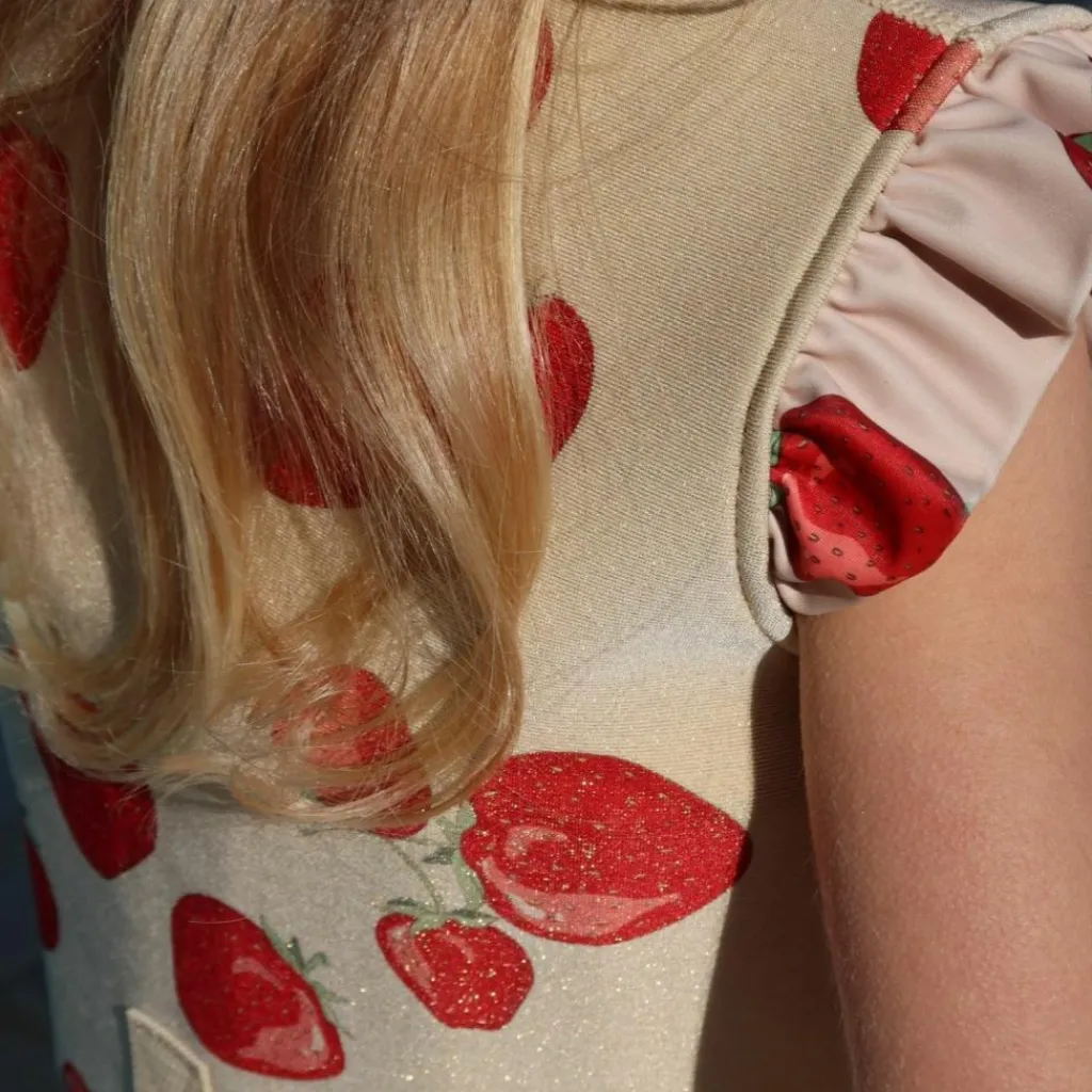 – Gilet flottant avec un effet scintillant et des détails à volants sur les épaules.