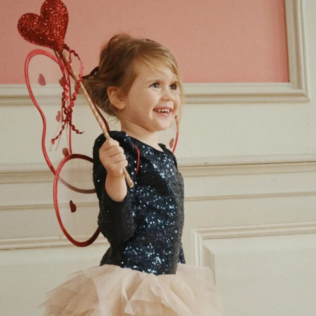 Avec ses ailes délicates ornées de cœurs rouges pailletés et sa baguette assortie, ce costume transforme instantanément chaque petite fille en une fée pleine de charme. Parfait pour les anniversaires, le carnaval ou simplement pour jouer à la maison, il promet des heures d’histoires enchantées et de jeux imaginatifs.