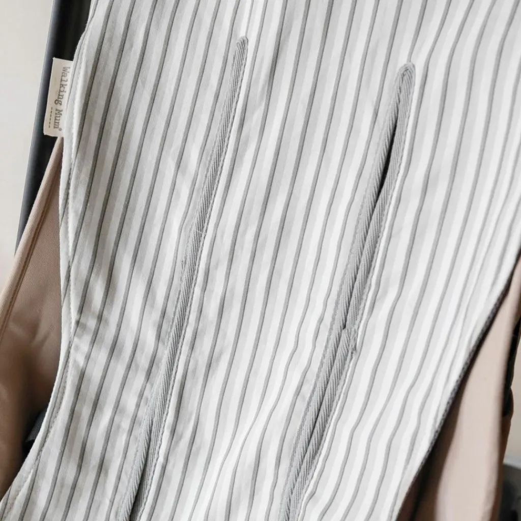 Un design pensé pour les familles modernes : Fabriquée en coton de haute qualité, cette assise allie esthétique et fonctionnalité. Elle protège la poussette tout en assurant un cocon douillet à bébé. Le petit plus ? Sa finition soignée avec une étiquette brodée « Walking Mum » qui signe un produit haut de gamme et résolument moderne.