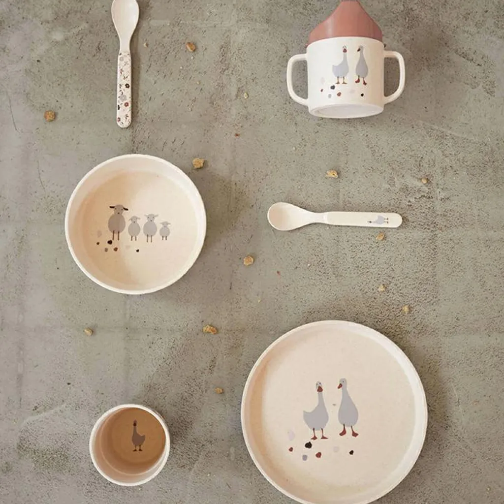 Le bol Tiny Farmer mouton et oie naturel de la marque Lässig est idéal pour que bébé apprenne à manger tout seul. Sa forme et ses mignons motifs rendront le moment du repas plus agréable.
