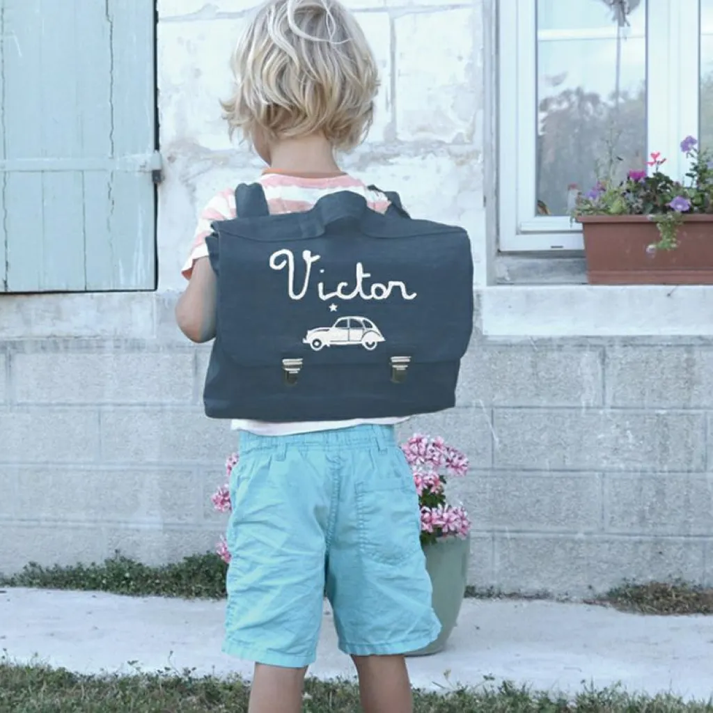 Créé et fabriqué en France, ce cartable en toile de coton épaisse et résistante (400 g/m²) allie qualité et style. Grâce à la personnalisation, vous pouvez ajouter le prénom, un surnom ou même un joli motif pour en faire un modèle unique qui accompagnera fièrement votre enfant à l’école.
