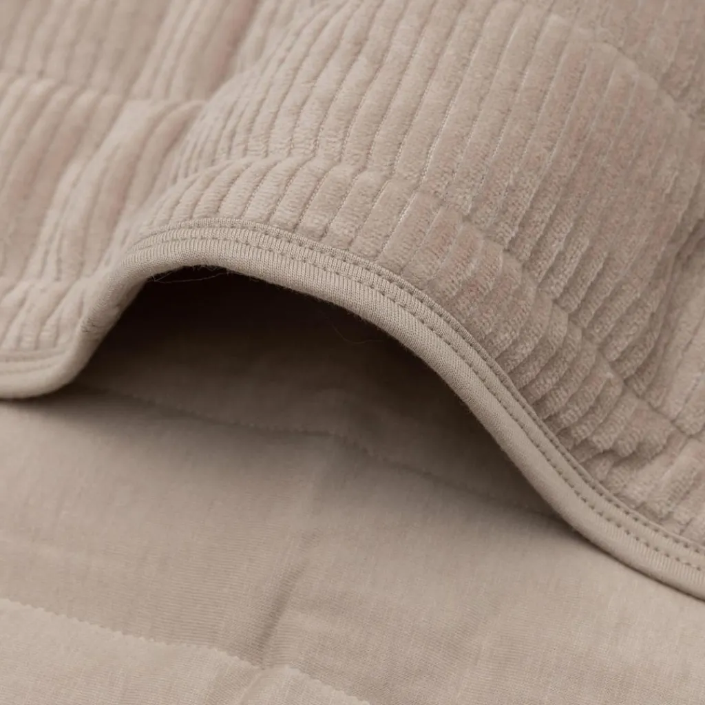 – Réversible : Variez les ambiances avec ses deux faces : un côté en jersey tout doux, un autre en velours côtelé tendance.