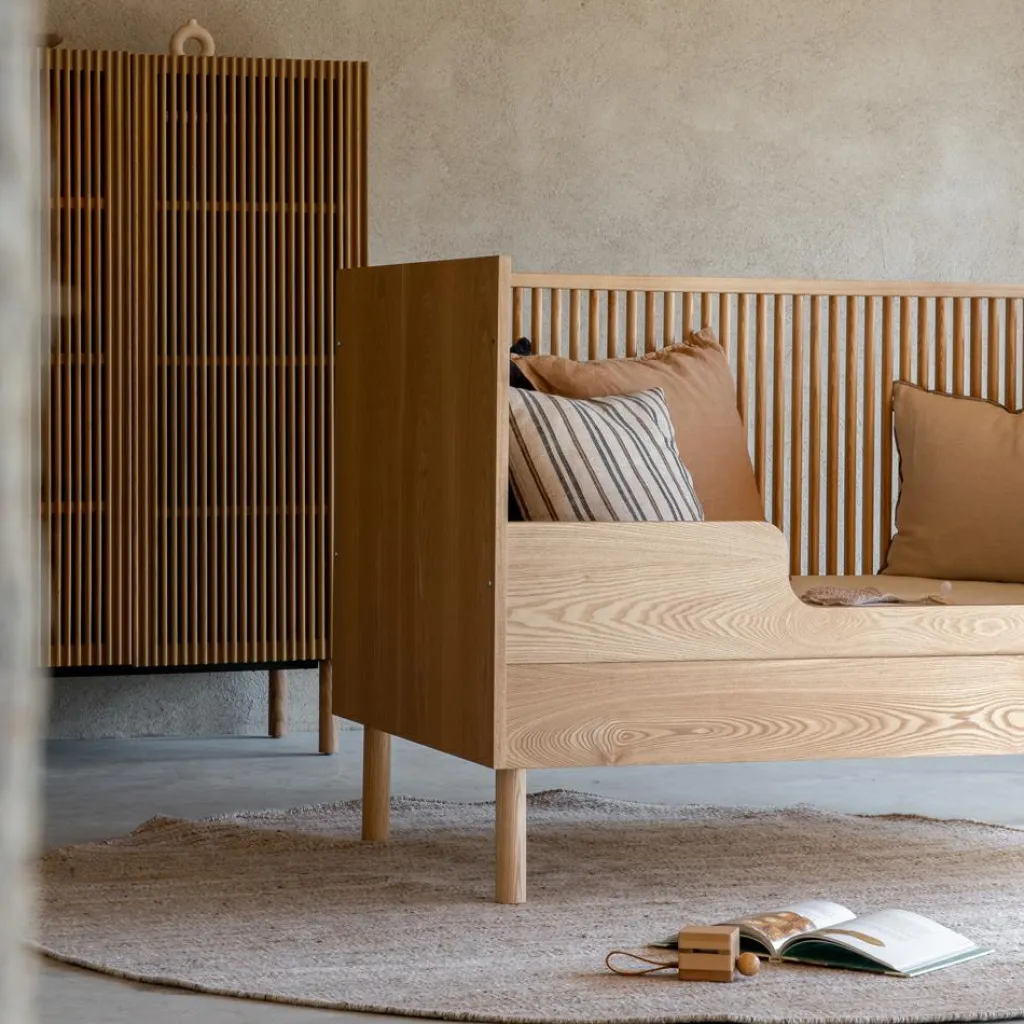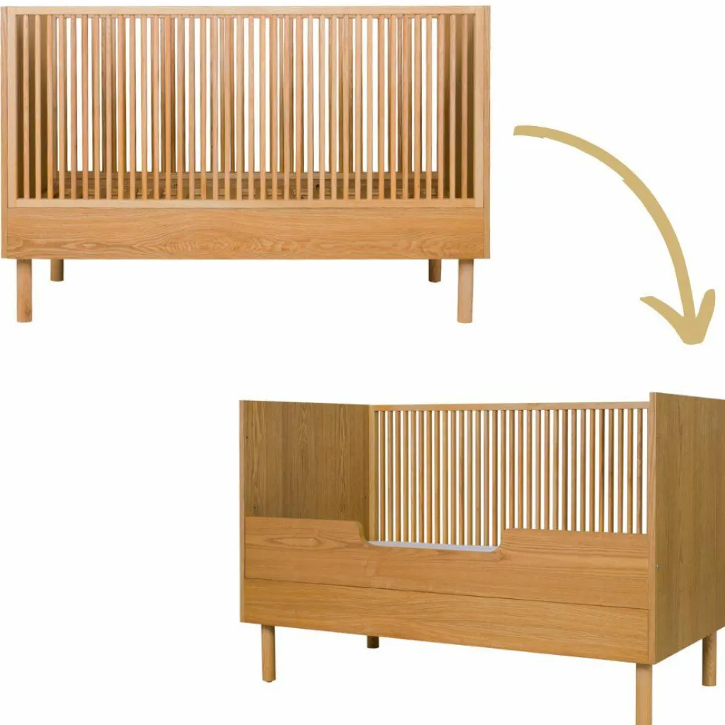 – Hauteur réglable en lit à barreaux en 2 positions.