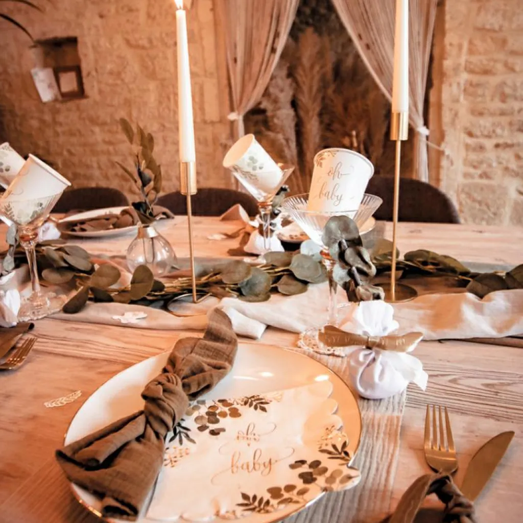 Lot de 8 assiettes Jolis Brins vert sauge et or Assiettes En Carton