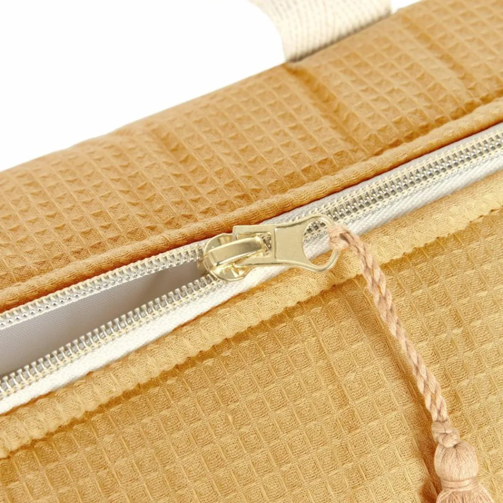 Matière : Nid d’abeille 100% coton bio , doublure 100% polyester imperméable , remplissage 100% polyester min. 75% PET recyclé