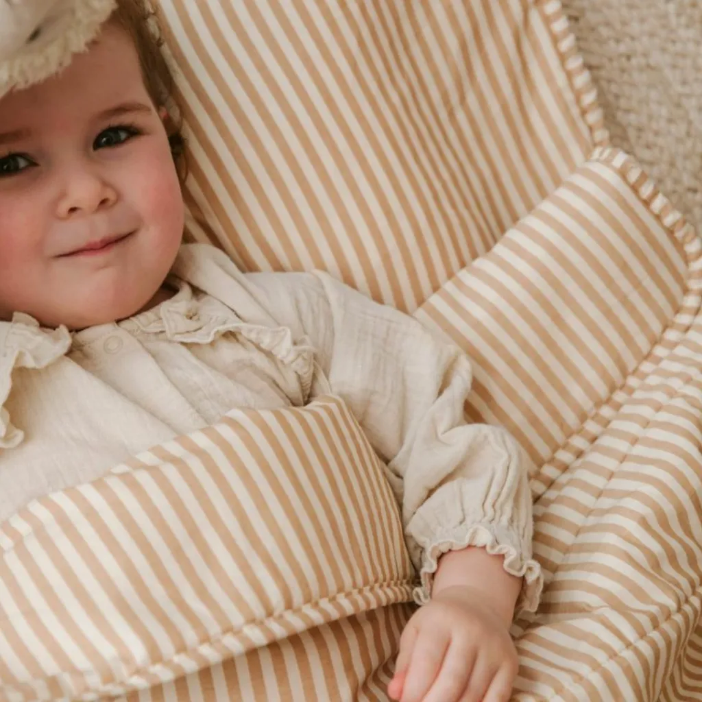 Offrez à votre enfant des nuits douces et sécurisées avec le sac de couchage Rayé Ambre de Kadolis, en coton bio, conçu spécialement pour les enfants de 3 à 5 ans.