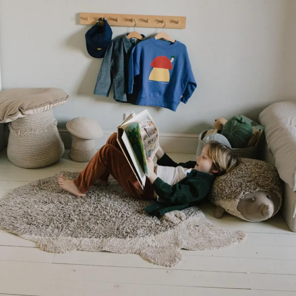 Préparez-vous à une ambiance boisée avec le tapis animal hérisson ! Un tapis en coton en forme de hérisson soigneusement conçu dans des couleurs naturelles et des marrons clairs, avec un poil long et une texture moelleuse qui simule les piquants du hérisson. Complet avec de jolis cache-oreilles et un œillet tressé, il apporte un charme rustique à n’importe quel espace. De plus, il est lavable, parfait pour ajouter une touche de confort inspiré de la nature à la chambre de vos enfants !