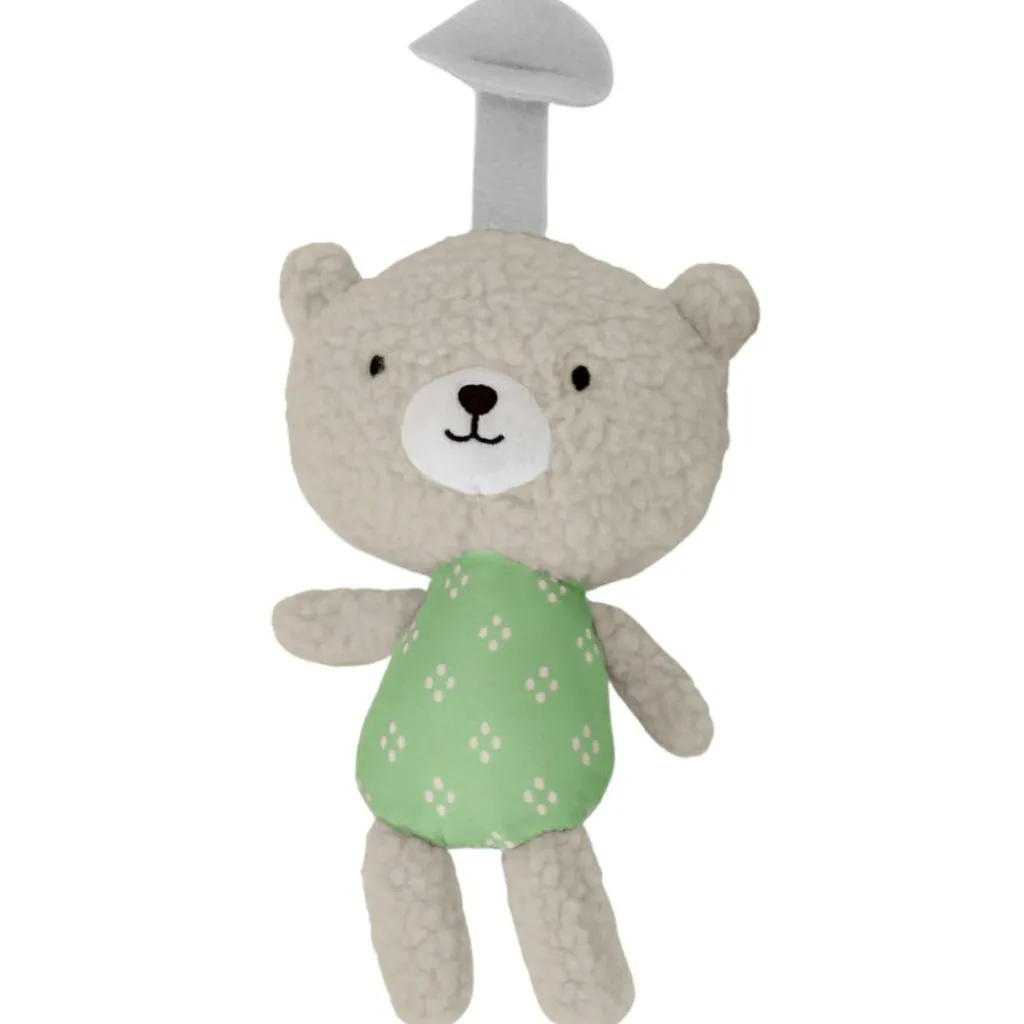 – Muni d’une arche de jeu en bois avec 5 jouets d’activité amovibles : deux jouets sensoriels en peluche, un anneau en bois avec un ruban sensoriel et deux miroirs.