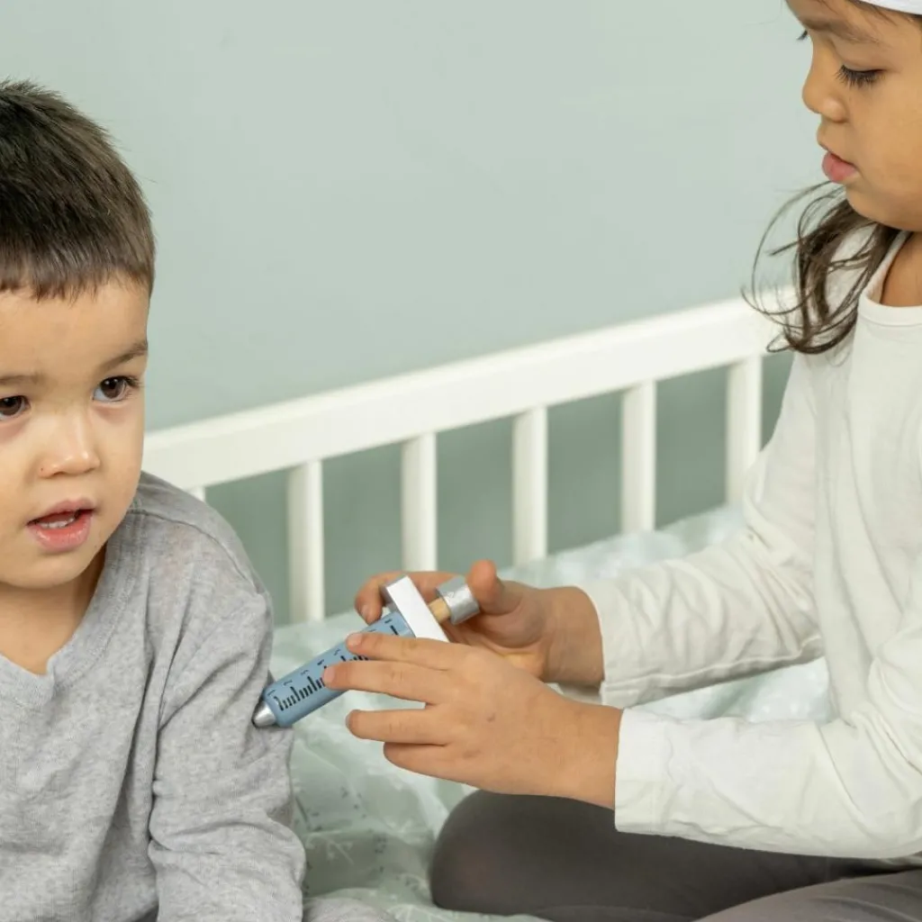 – Utiliser les instruments pour ausculter et soigner les poupées, peluches et proches.
