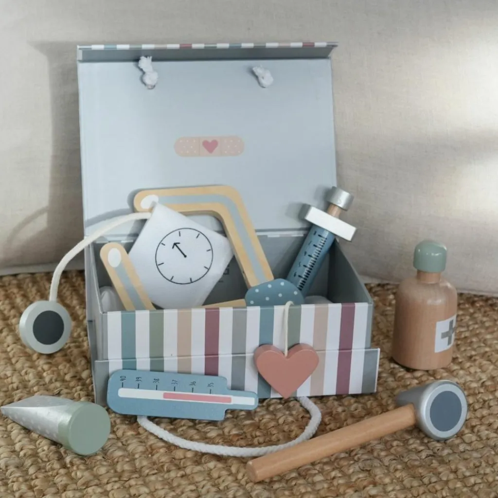Avec cette mallette élégante et complète, les enfants peuvent soigner leurs poupées, leurs peluches et même toute la famille. Un jeu de rôle amusant qui stimule l’imagination, développe l’empathie et aide à apprivoiser la peur du médecin. Grâce aux accessoires réalistes inclus, les petits docteurs en herbe s’amusent à ausculter, piquer et panser comme de vrais pros !