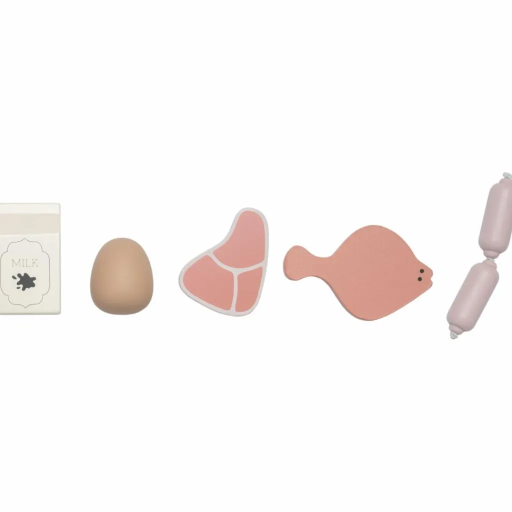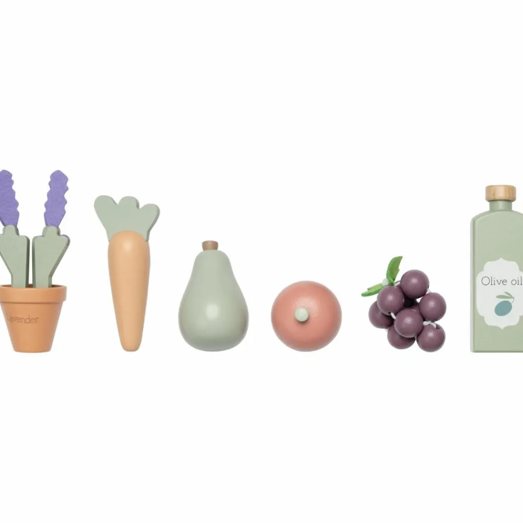 Avec ce stand aux couleurs pastel, les enfants s’amusent à jouer au marchand et à recréer l’ambiance des marchés traditionnels. Grâce à la variété de produits inclus – pain, légumes, fruits, viande, fromage, lait, huile d’olive et même un pot de lavande – chaque partie de jeu devient un moment de partage, de découverte et d’apprentissage. Les petits commerçants peuvent inventer leurs histoires, vendre, acheter et même s’initier aux premiers calculs.