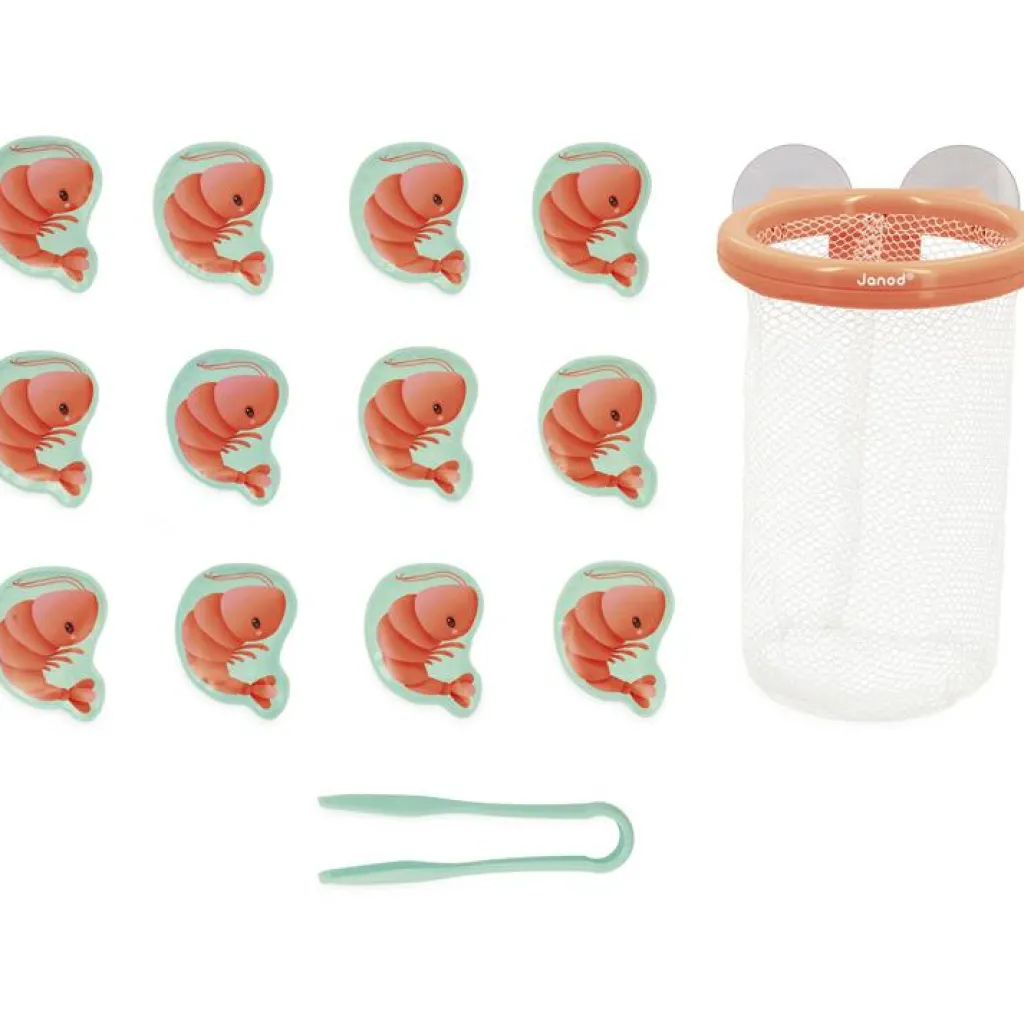 – Comprend 12 crevettes, 1 panier à ventouse et 1 pince.