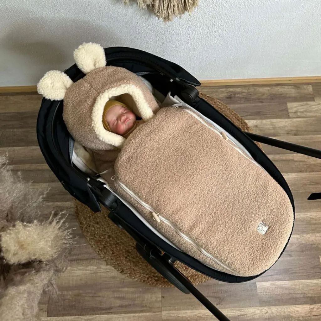 – L’intérieur de la chancelière est doublé à 100% de laine vierge afin d’offrir à ton bébé un environnement particulièrement doux et chaud.