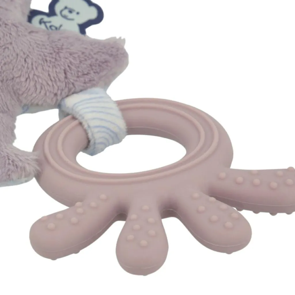 – Picots et rainures sur l’anneau pour masser les gencives de bébé.