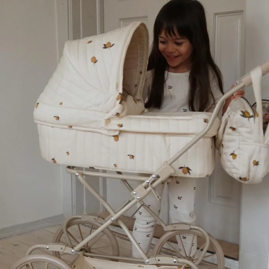 Ajoutez une touche d’élégance vintage aux jeux de votre enfant avec le Landau pour poupée Lemon de la marque Konges Slojd !