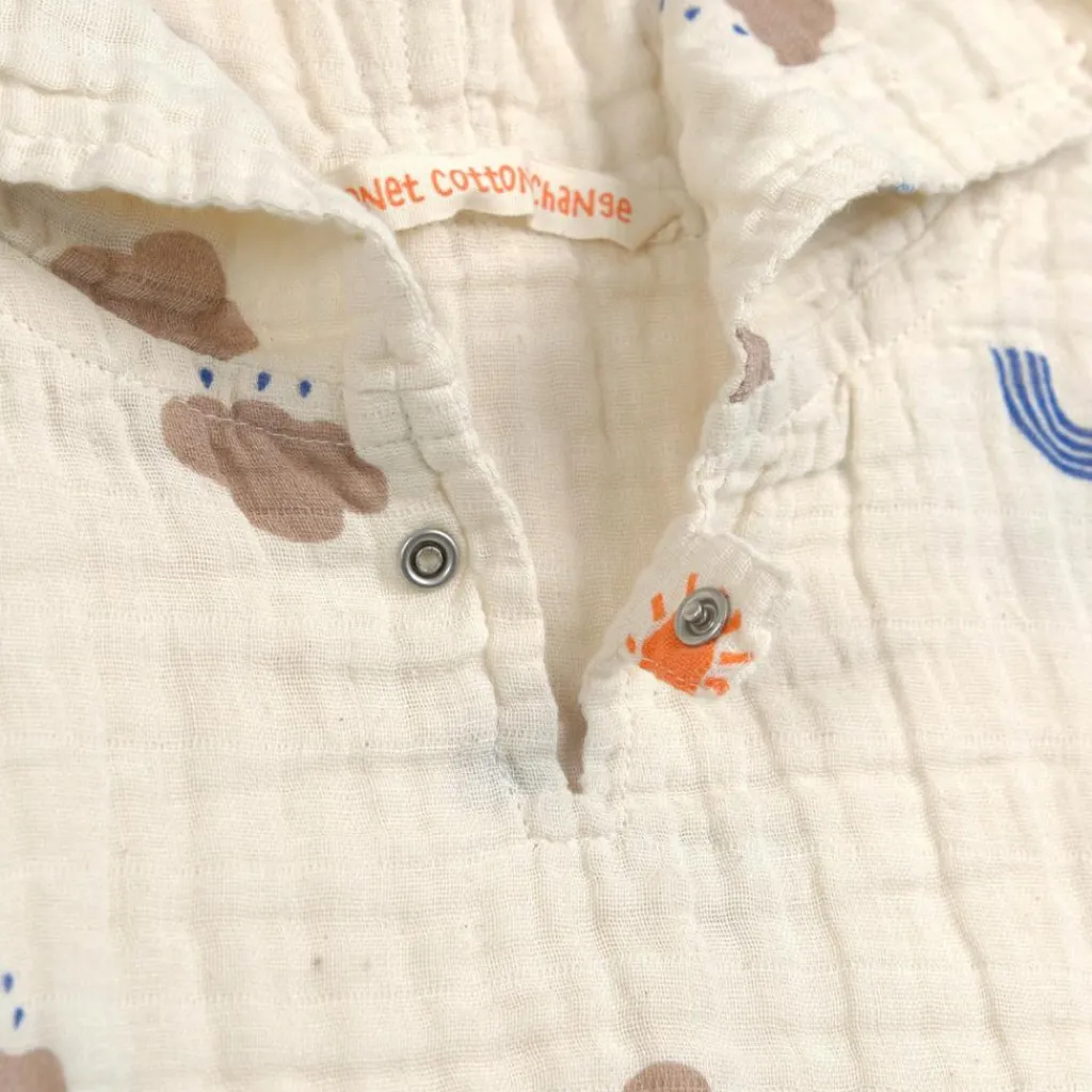 – Prélavé, elle est confectionné en pur coton, doté d’une doublure, respirant et très doux pour la peau des enfants.