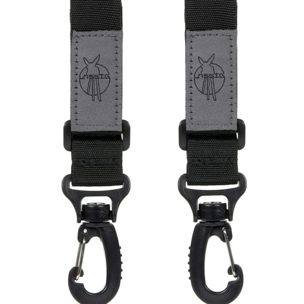 Les crochets attache poussette de la marque Lässig permettent d’avoir à portée de main son sac à main lors des balades en poussette.