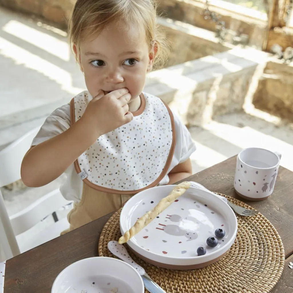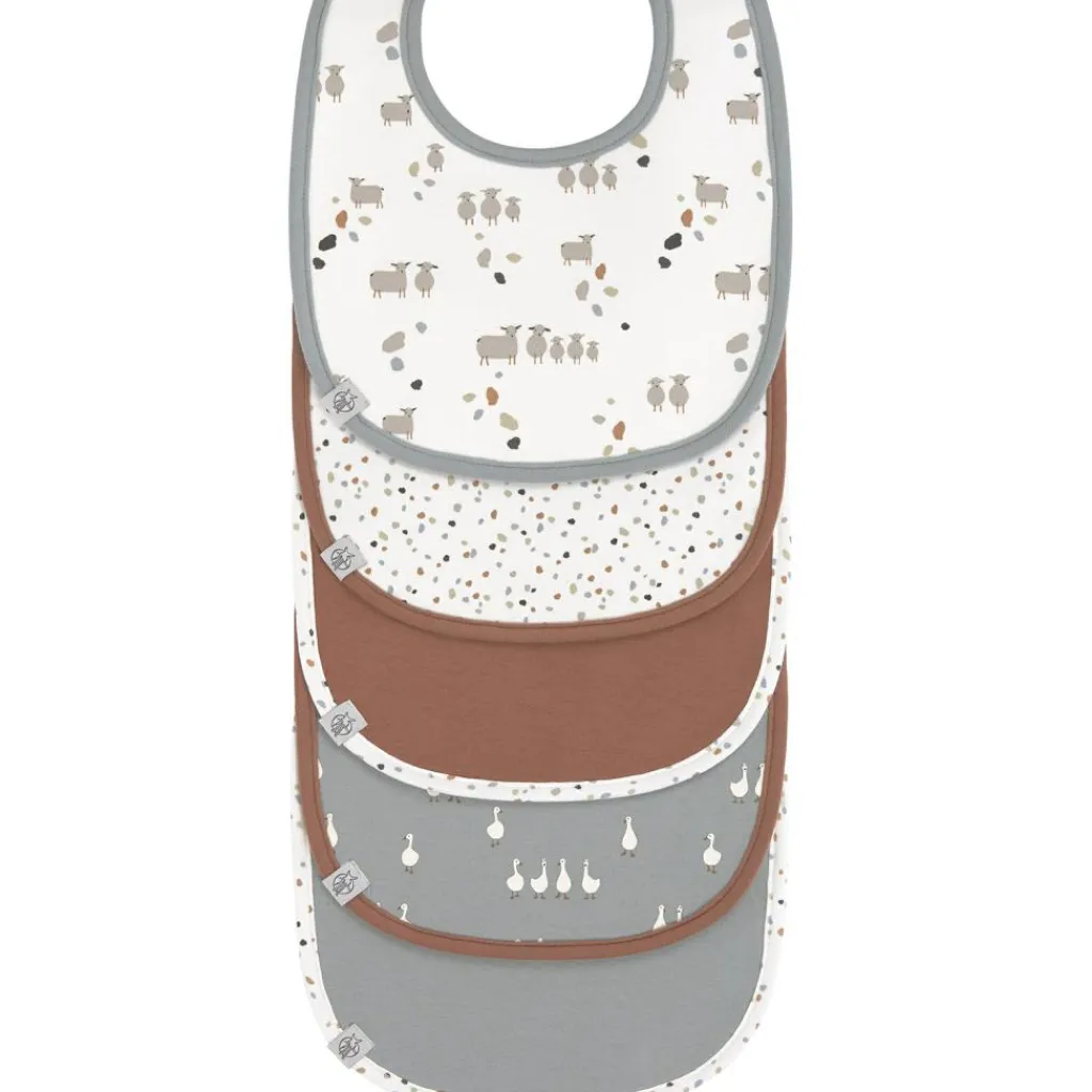 Le lot de 5 bavoirs en éponge Tiny Farmer Mouton bleu de la marque Lassïg protègera les vêtements de bébé pendant les repas.