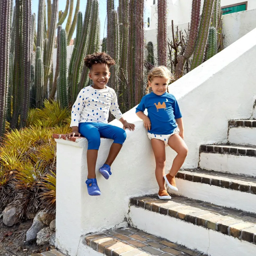 – Composé à 82% de polyester (recyclé) et de 18% d’élasthanne permet de profiter pleinement du plaisir de la baignade grâce à son indice de protection UV de 60 et de ses imprimés fantaisie.