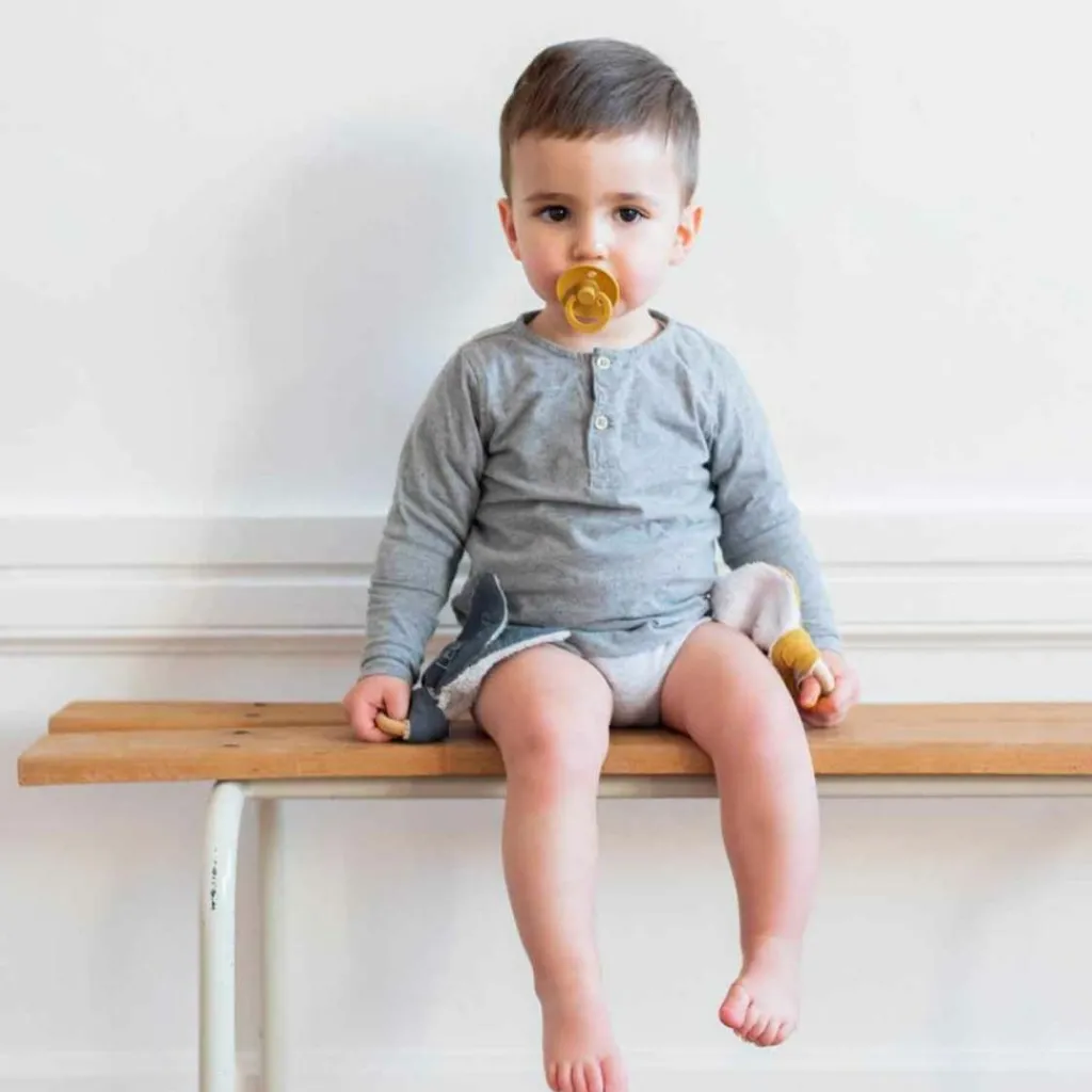L’anneau de dentition en bois Bleu pétrole de la marque Les Griottes sera un adorable jouet d’éveil et soulagera les gencives sensibles de votre bébé lors de ses poussées dentaires.