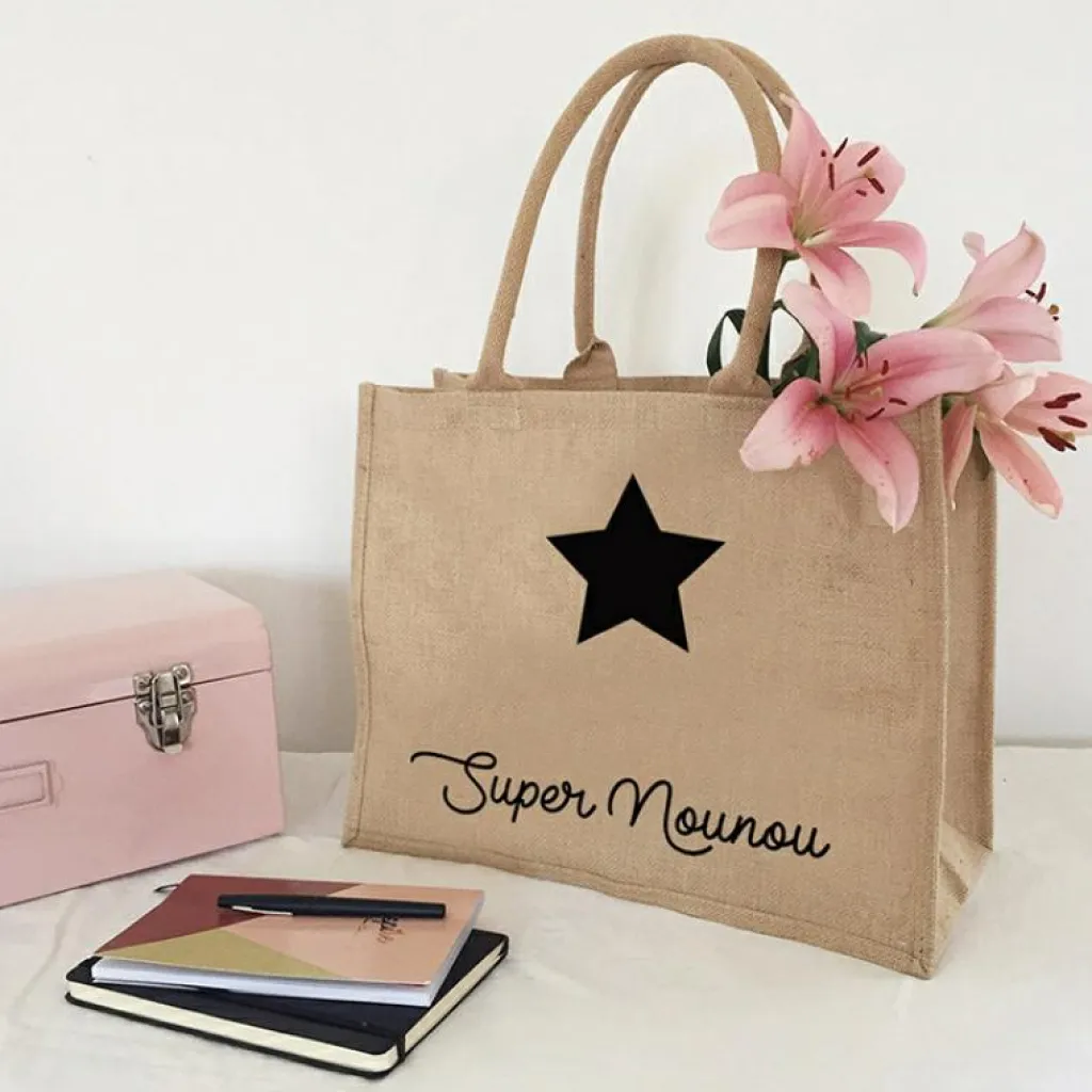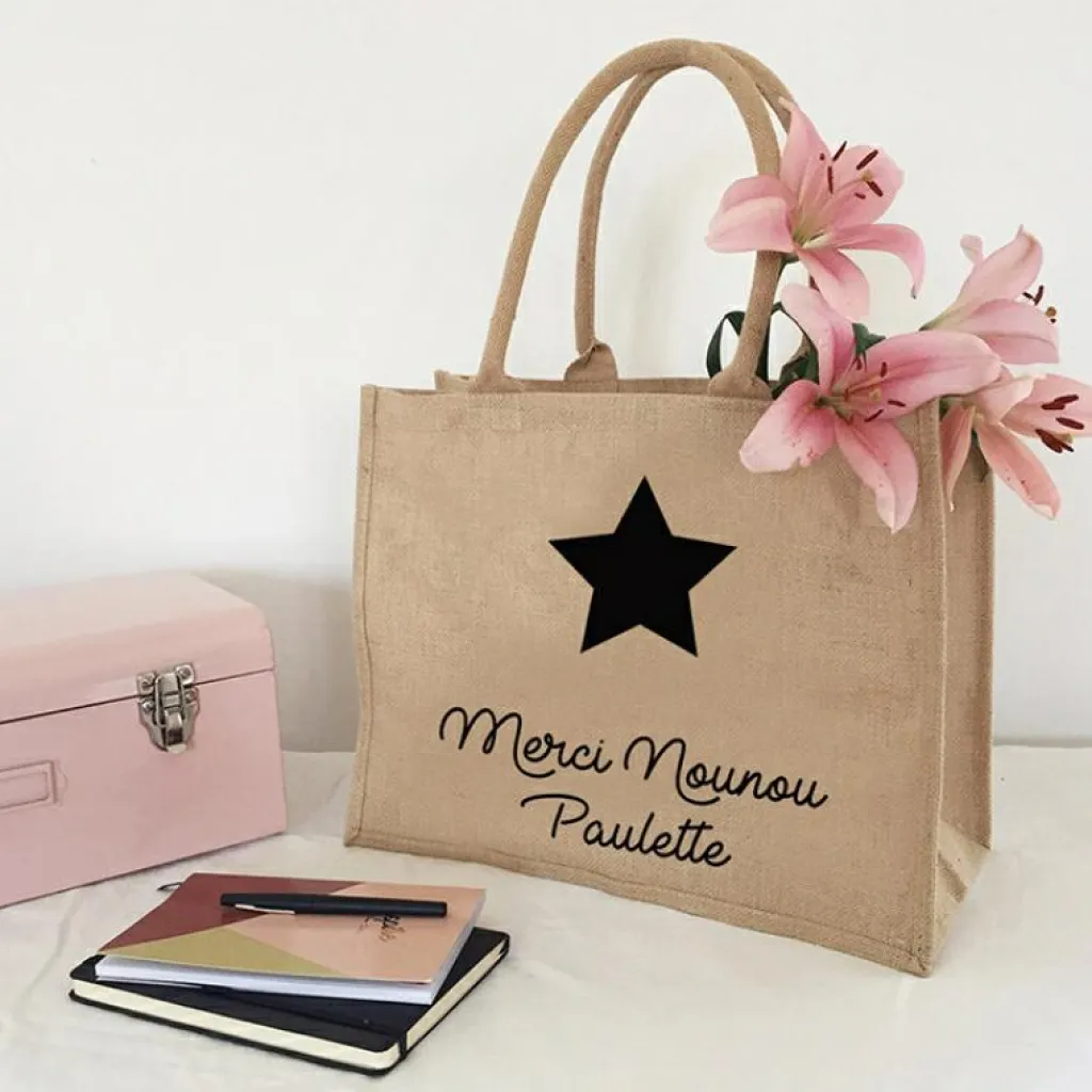 Le sac cabas Nounou Etoile de la marque Les Griottes est personnalisable ! Une manière sûre de faire plaisir, idéal pour aller à la plage ou au marché.