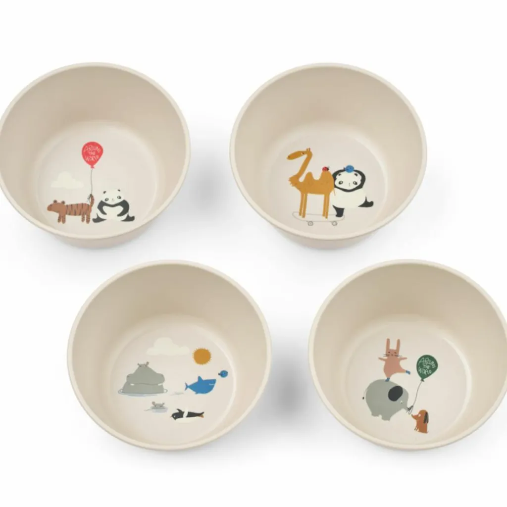 Offrez à vos enfants des repas sereins et stylés avec le Lot de 4 bols Cees de Liewood, un indispensable du quotidien aussi beau que durable.