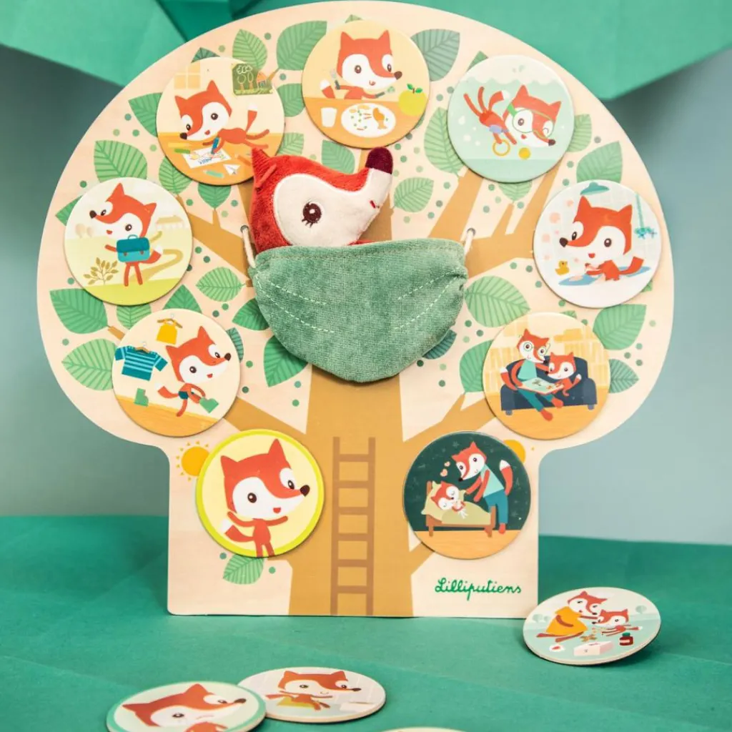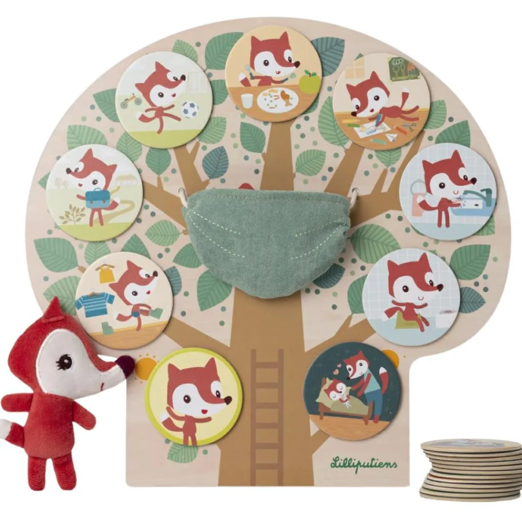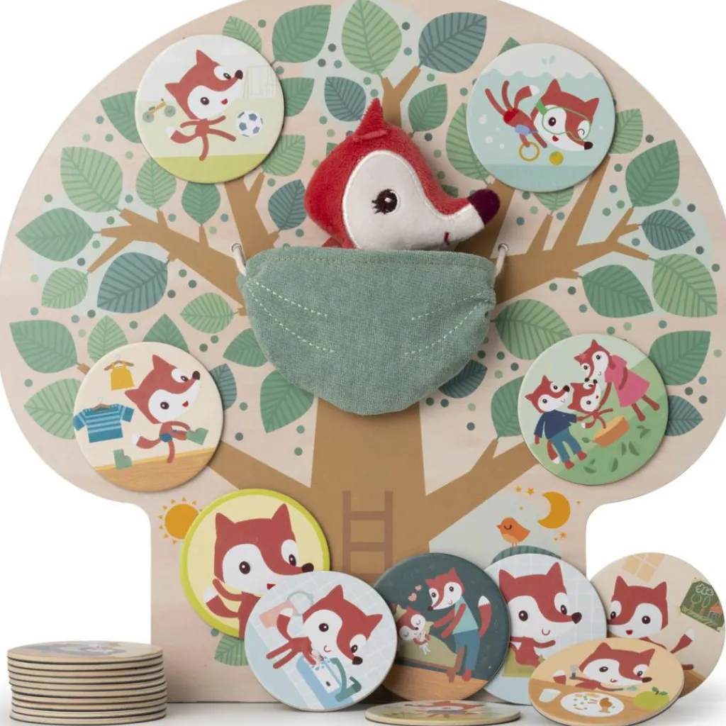 – Comprend 1 arbre en bois, 19 cartes aimantées, 1 peluche et 1 hamac.