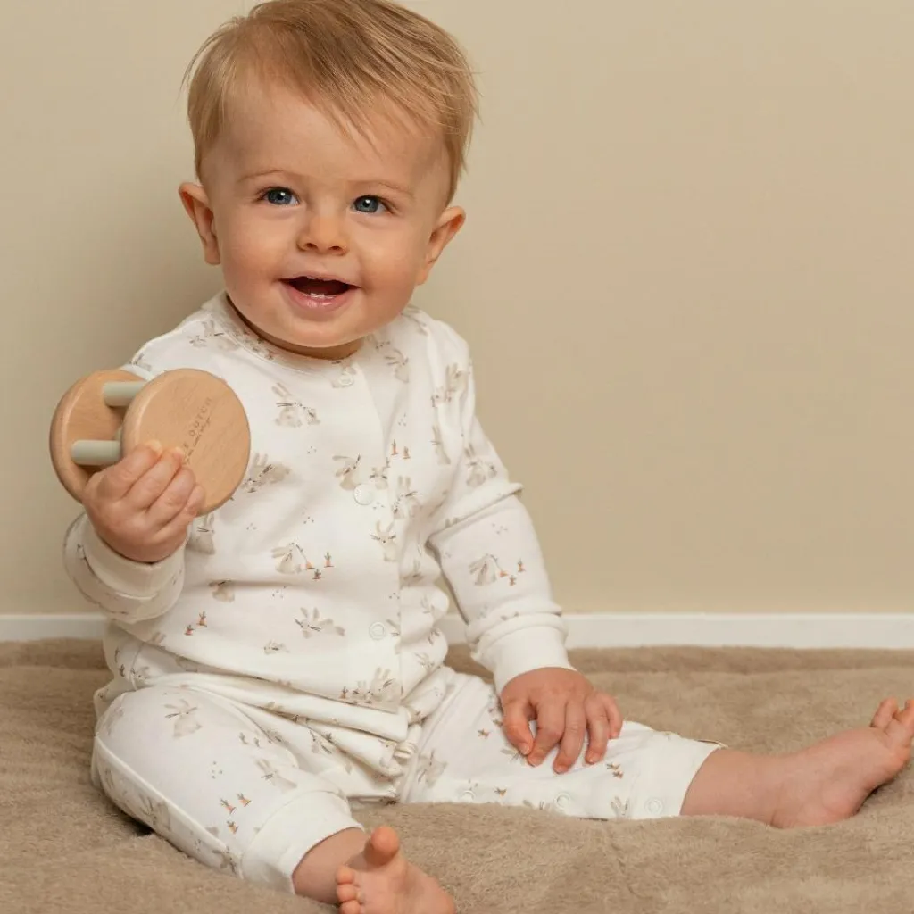 – Ce joli hochet en bois de la collection Baby Bunny roule et roule, faisant un bruit de cliquetis.