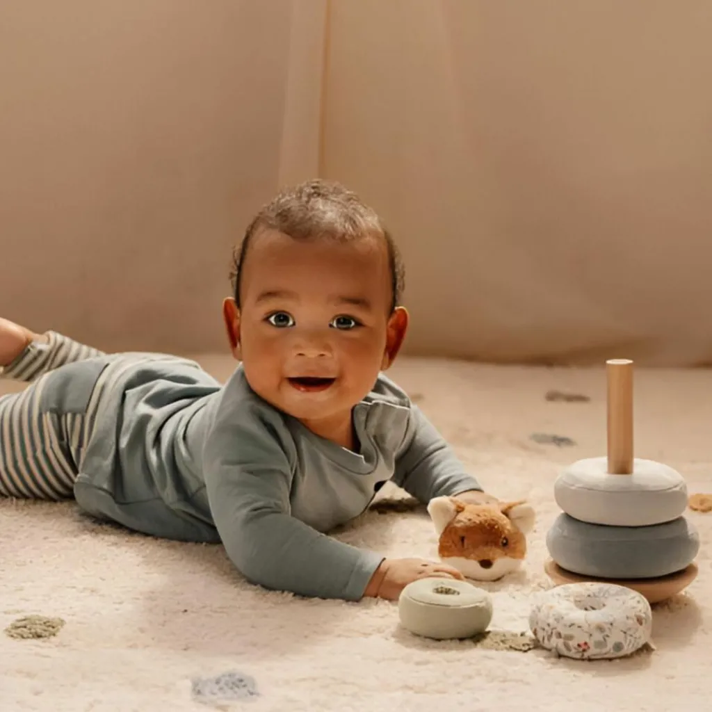 Le Renard à empiler Forest Friends de Little Dutch est un adorable jouet conçu pour stimuler la motricité fine et l’éveil sensoriel de bébé. Avec ses anneaux en tissu et en bois à empiler dans le bon ordre, ce jouet encourage la coordination œil-main tout en éveillant les sens grâce à ses textures variées.