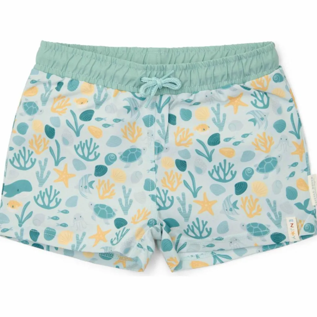 Plongez dans un monde de plaisir avec ce short de bain qui transforme la plage ou la piscine en terrain de jeu aquatique, à chaque éclaboussure! Le motif Seashells, orné de coquillages, étoiles de mer, coraux et baleines, confère à ce maillot de bain une touche marine ludique et enchantée.