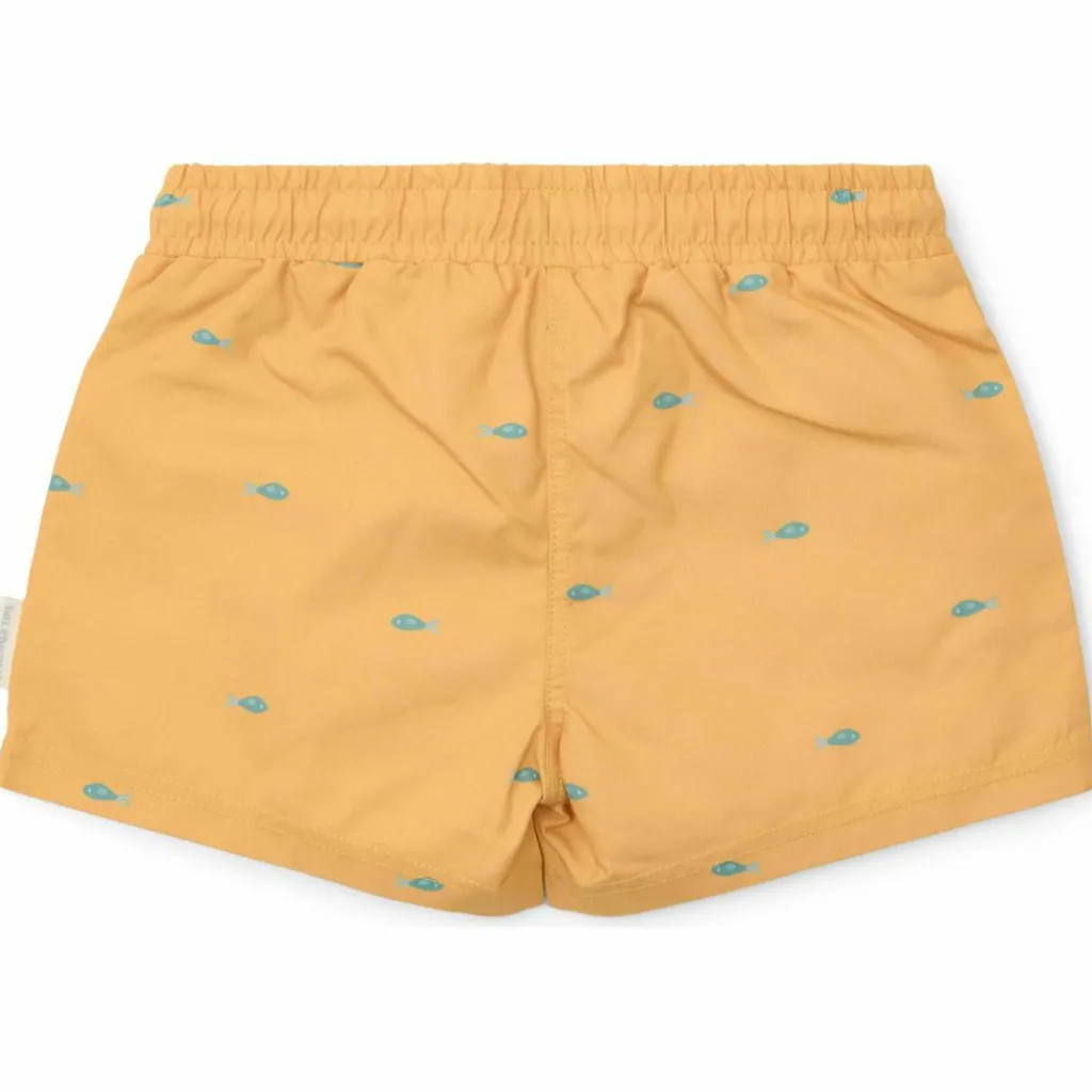 Plongez dans un monde de plaisir avec ce short de bain qui transforme la plage ou la piscine en terrain de jeu aquatique, à chaque éclaboussure! Ce short de bain jaune Seashells Sunny est orné de petits poissons qui nagent dans tous les sens.