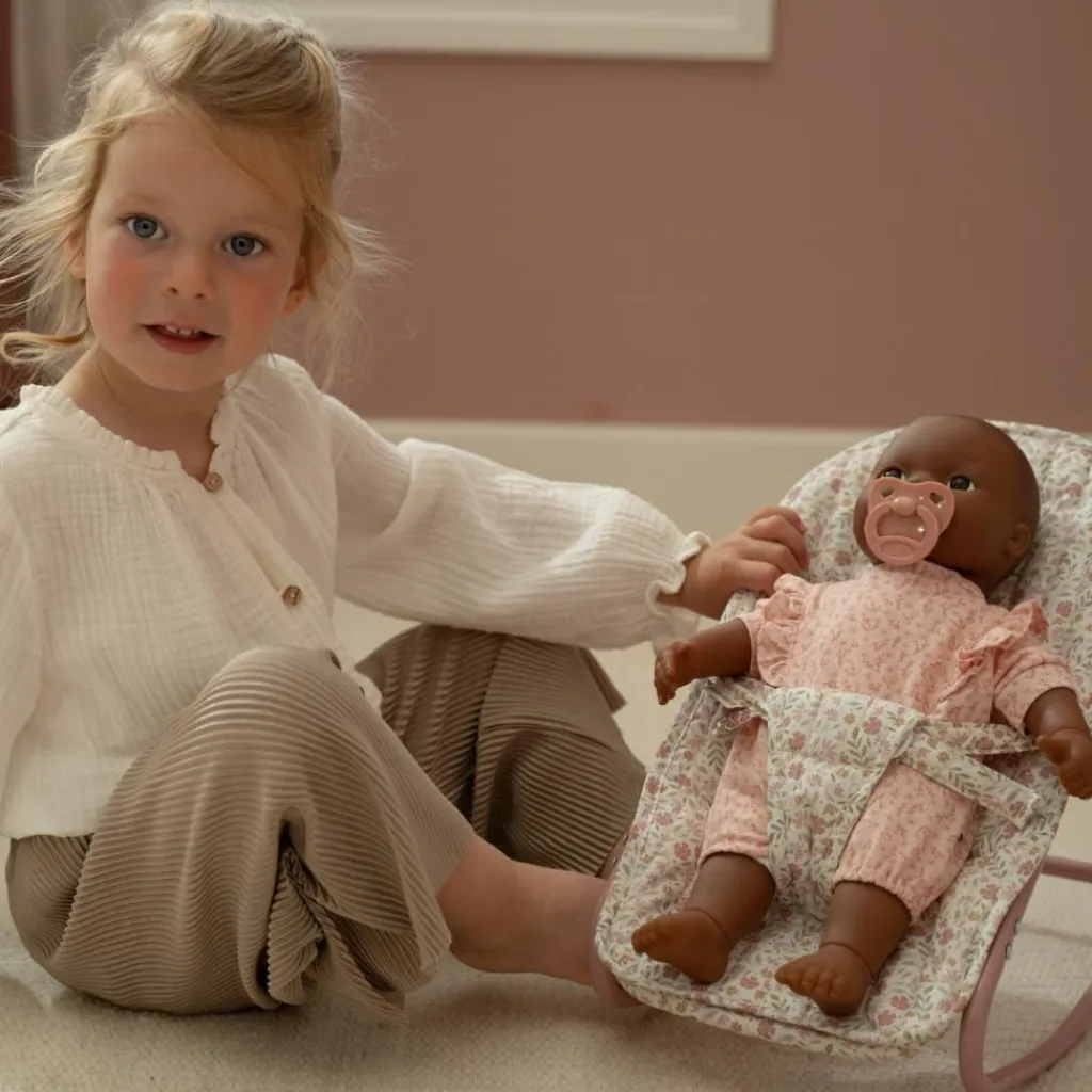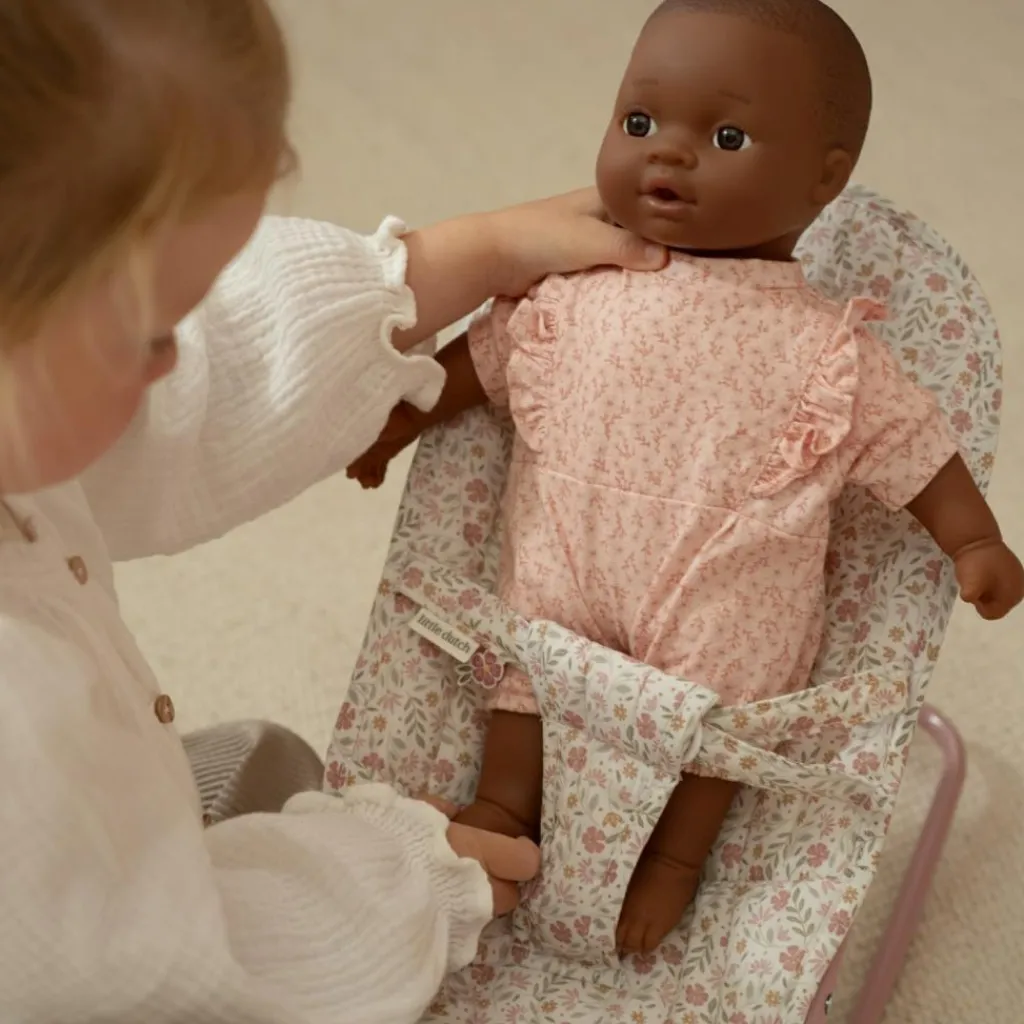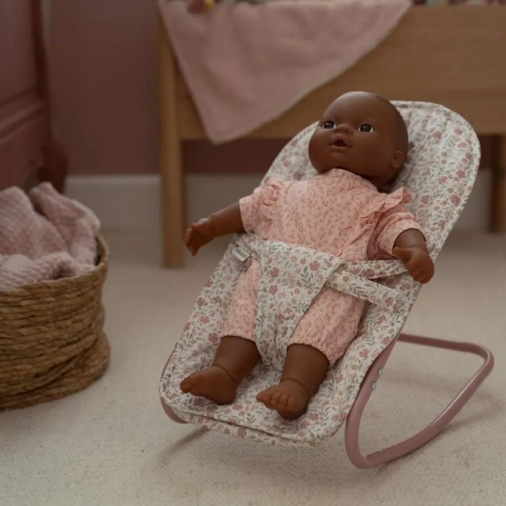 Offrez un moment de tendresse aux poupées avec ce magnifique transat au tissu fleuri, à la fois élégant et réaliste !