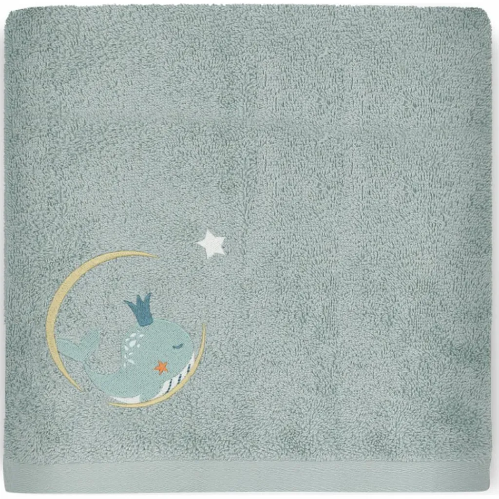 Dans de jolis tons lagon, cette serviette est ornée d’une belle broderie représentant une baleine couronnée, symbole de douceur et d’aventure. Elle allie praticité et poésie, transformant chaque sortie de bain en un moment de plaisir et de rêverie.