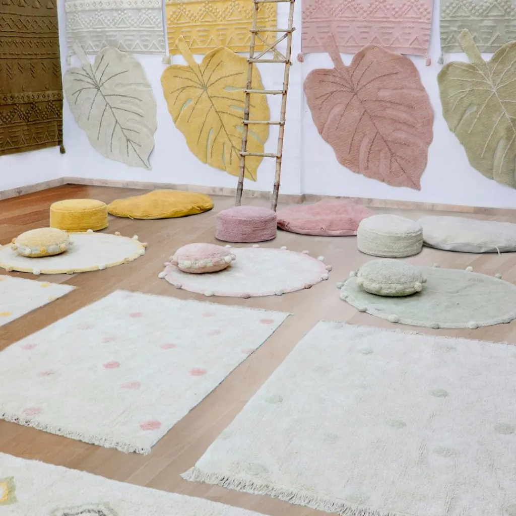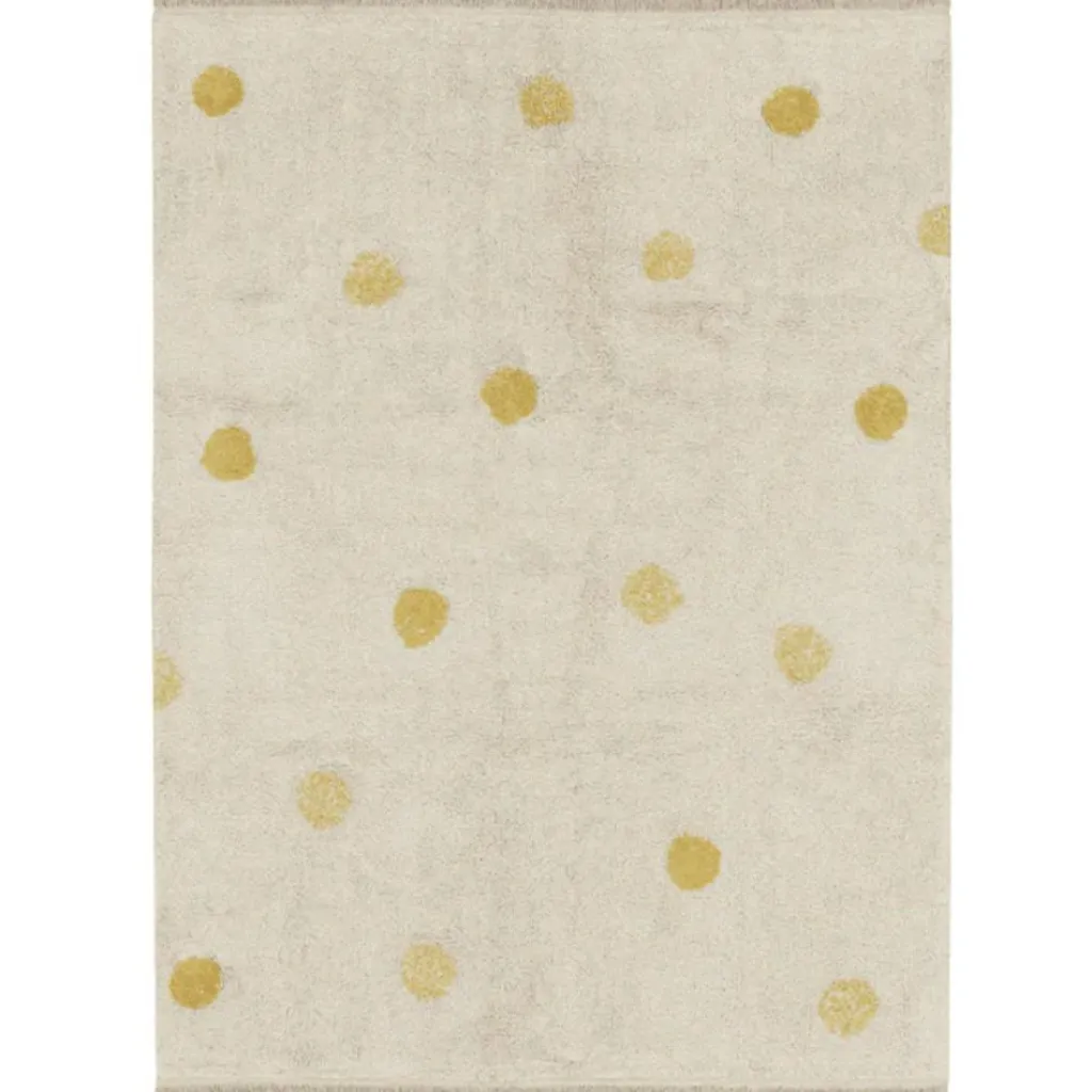 Le tapis lavable Hippy Dots natural miel de la marque Lorena Canals apporte une touche de décoration chaleureuse et naturelle avec style et raffinement à une chambre d’enfant.
