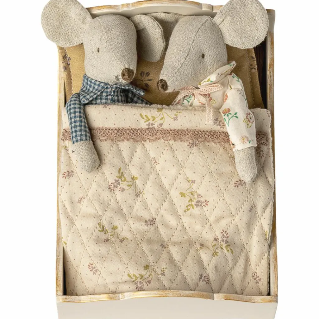 Offrez un doux sommeil à vos petites souris avec ce ravissant lit blanc cassé, signé Maileg.