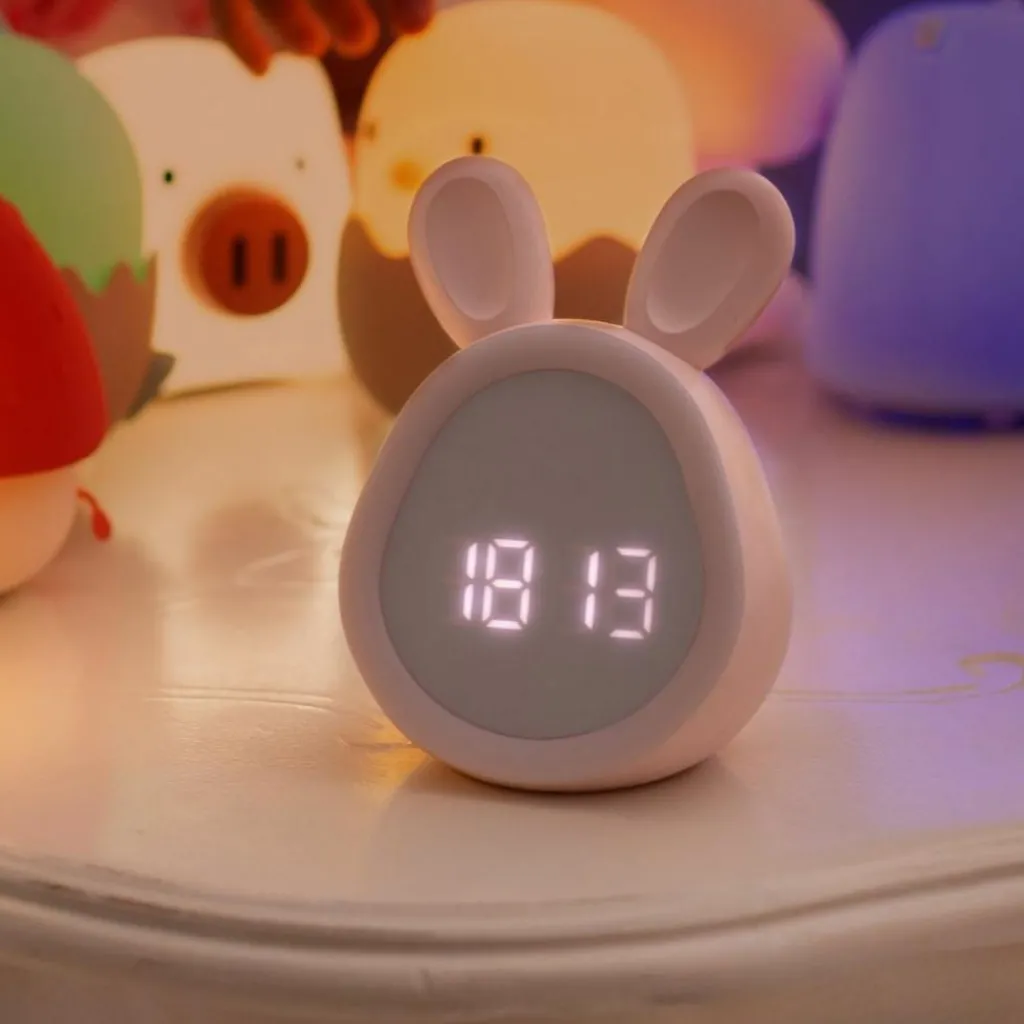 Design et couleurs : Le réveil en forme de lapin est particulièrement mignon et esthétique, ce qui le rend parfait pour une chambre d’enfant ou comme élément décoratif amusant dans la chambre à coucher.