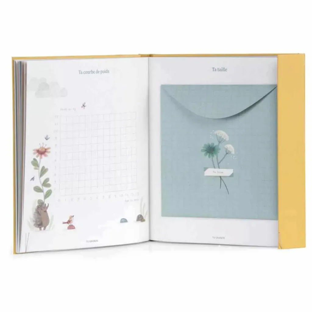 Ce magnifique livre illustré de 80 pages accompagne votre enfant de ses premiers jours jusqu’à ses 6 ans. Un véritable trésor où parents et proches peuvent noter les plus beaux moments et y coller des photos. Gardez également les souvenirs de votre enfant grâce à ses 6 enveloppes intégrées.